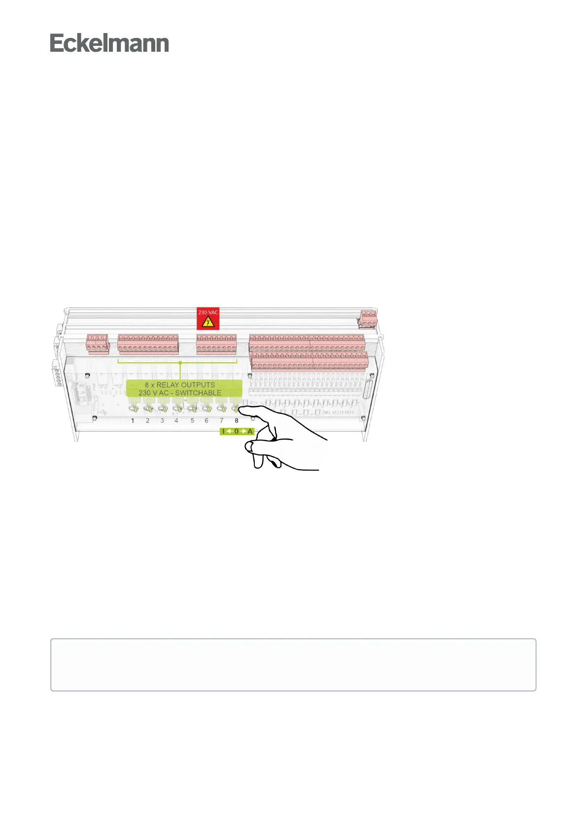 Example on the base module (S8 on O = Manual OFF)