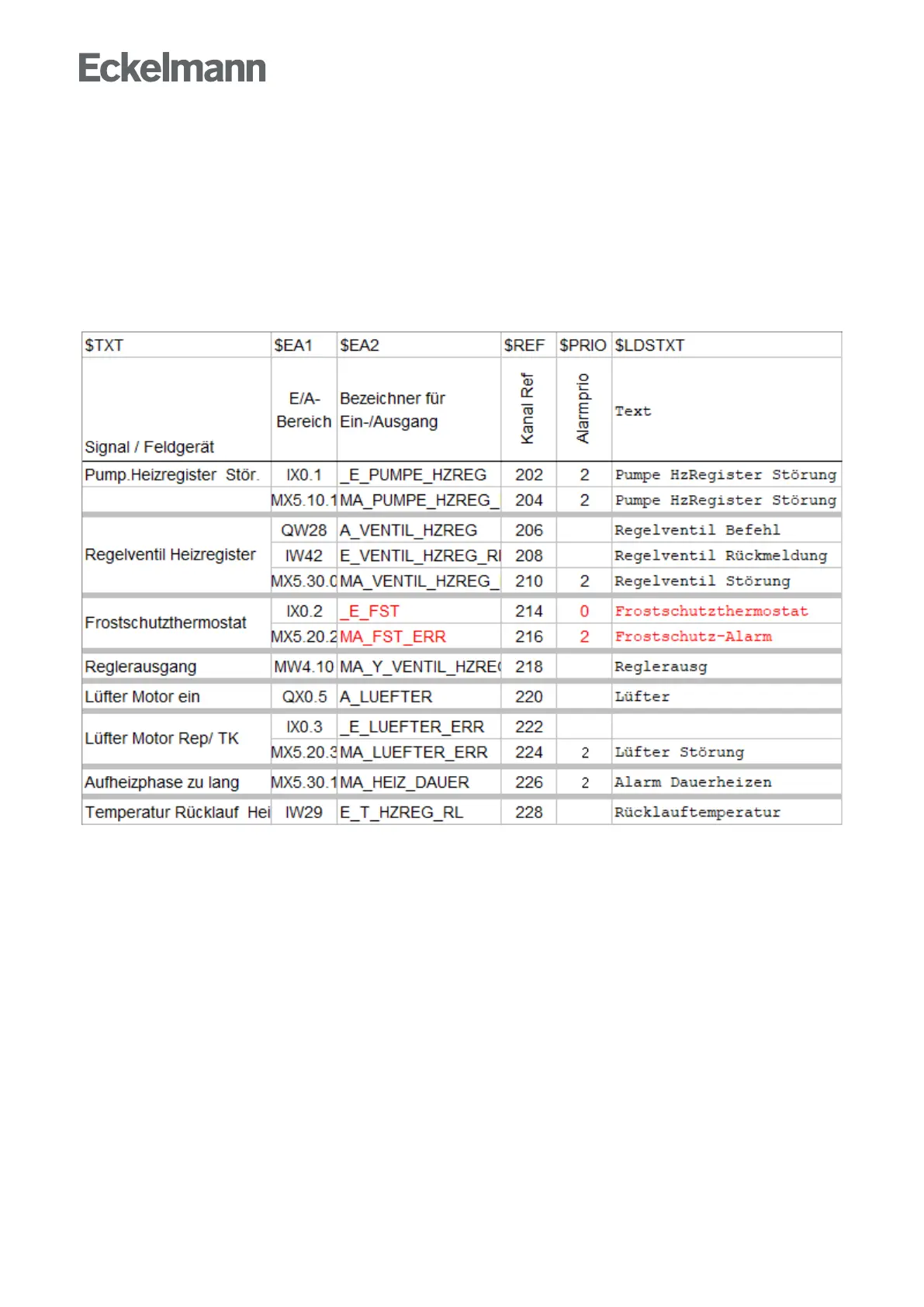 variable "_E_FST" changes from High to Low, a "frost protection thermostat" alarm is sent with priority 0.