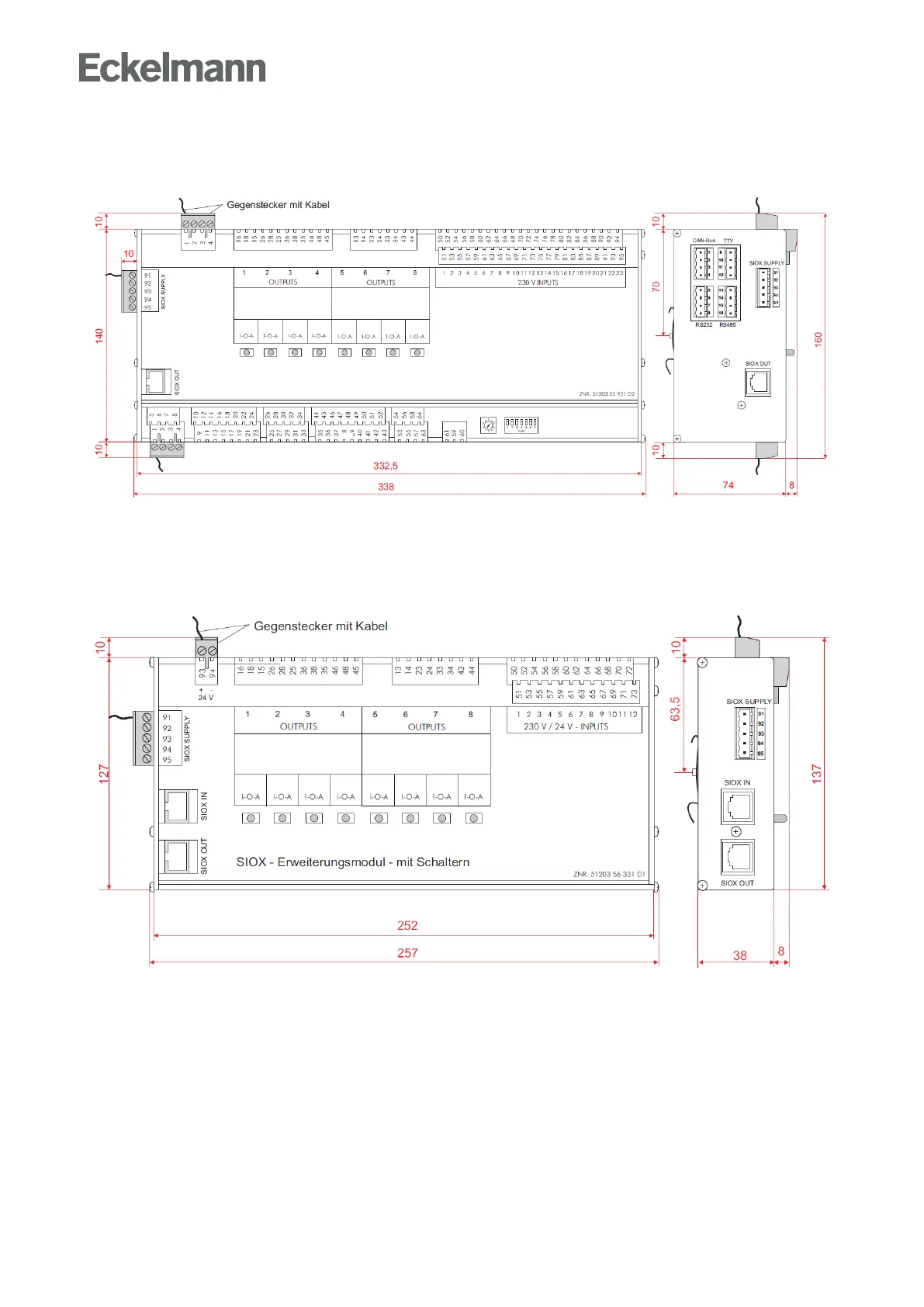 ECKELMANN Compact GLT 3010 - Mechanische Daten GLT X010; Mechanical Data SIOX Extension Module