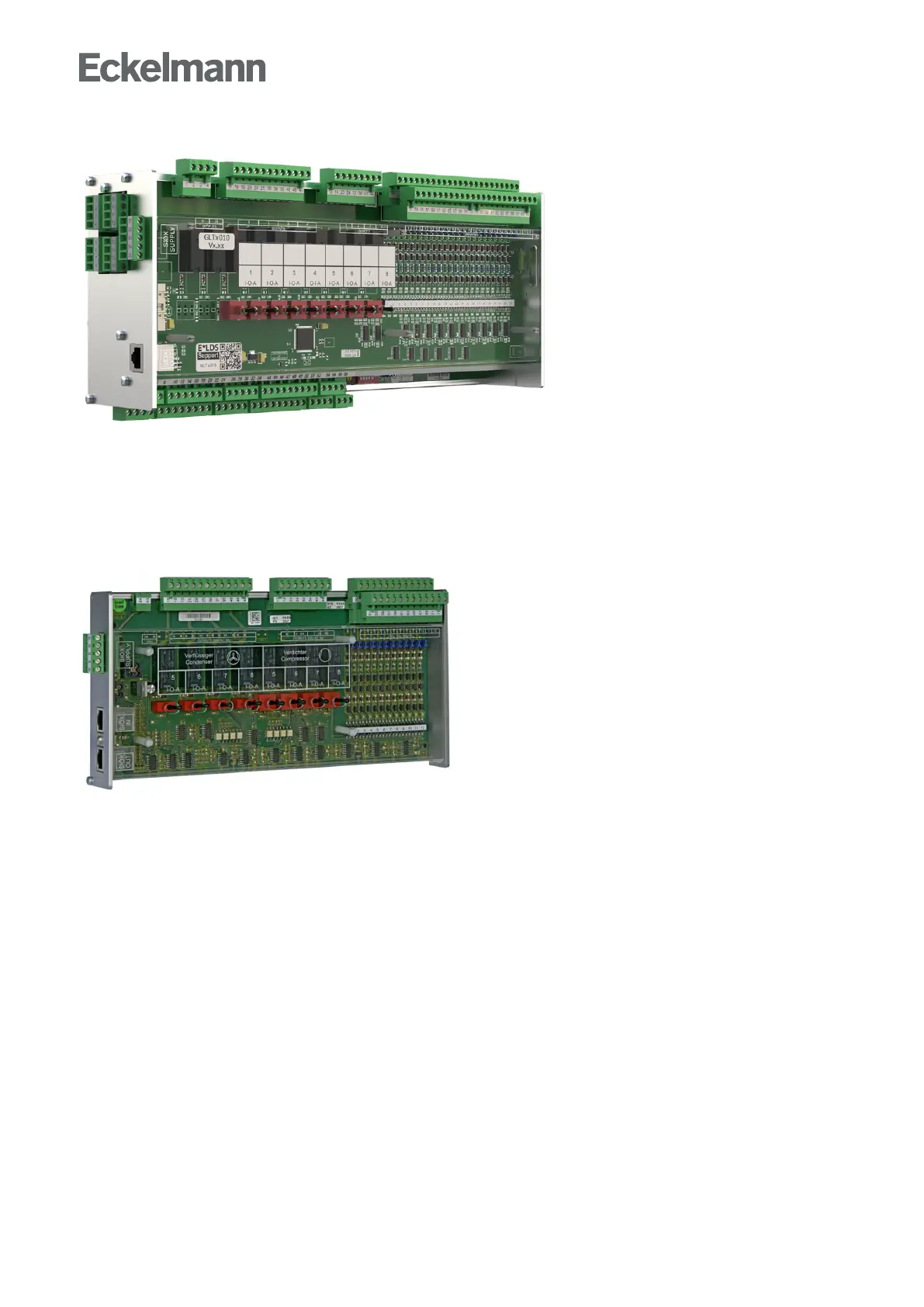 of an analogue input/output module (lower board) and a digital input/output module (upper board). The