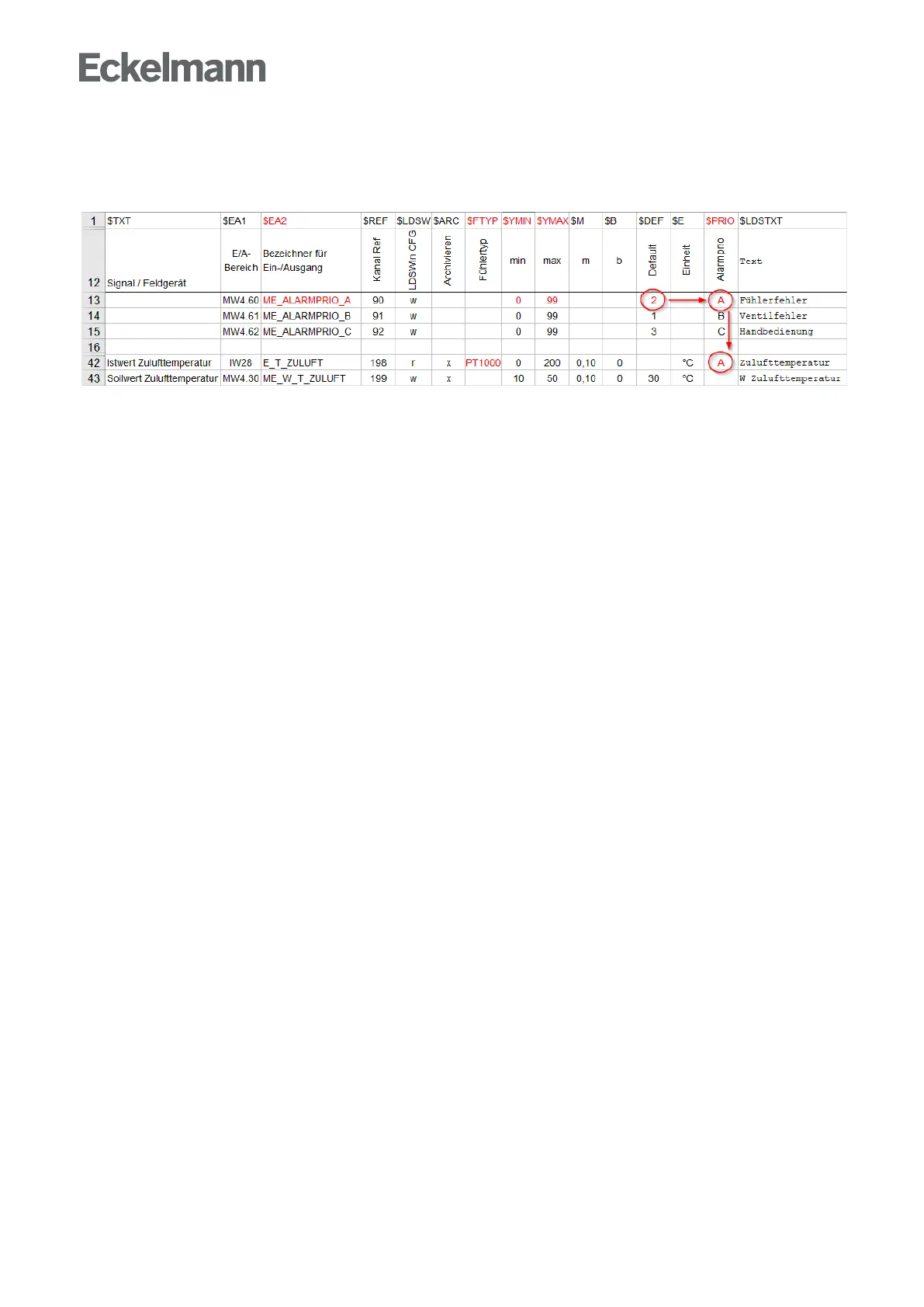$DEF, $YMIN, $YMAX. In the $PRIO column, the priority is then assigned to a group via the identifier instead of