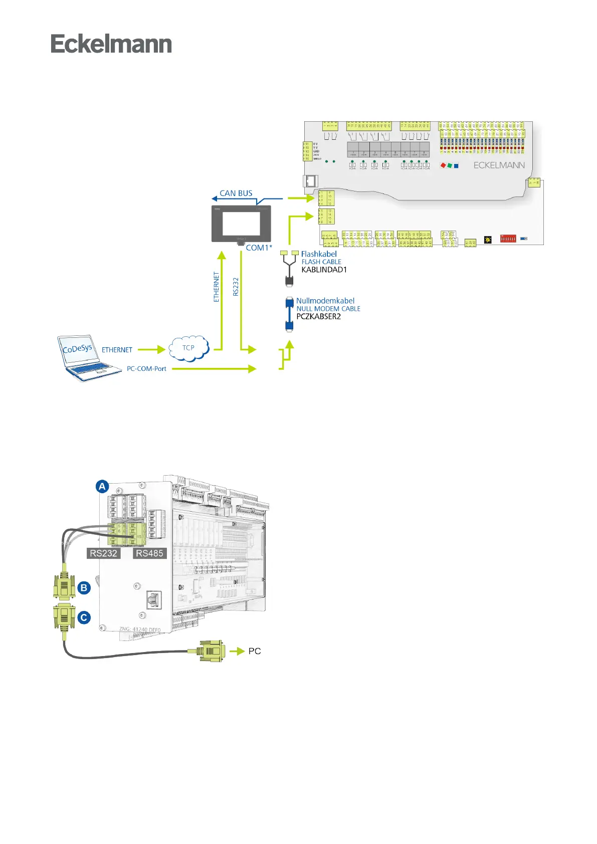 The controller must be connected to the development PC / notebook via the RS232 interface for application