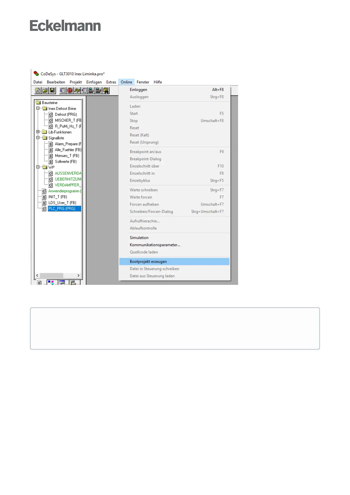 selection "Online → Create boot project") and are also still available after a restart (e.g. after a power
