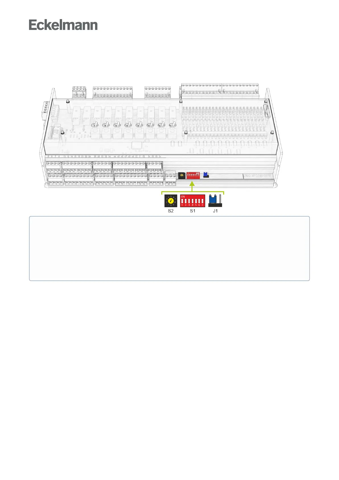 The default parameter settings can be configured using the decade switch S2, the DIP switch S1 and the