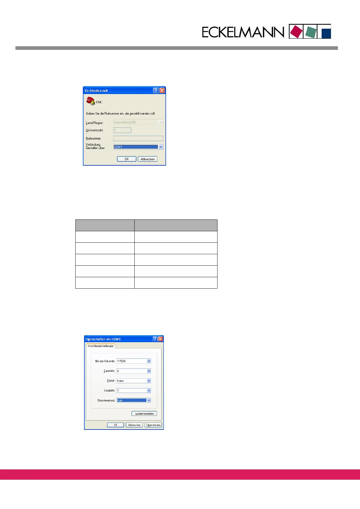 The next prompting refers to the serial interface to which the connection cable is connect-