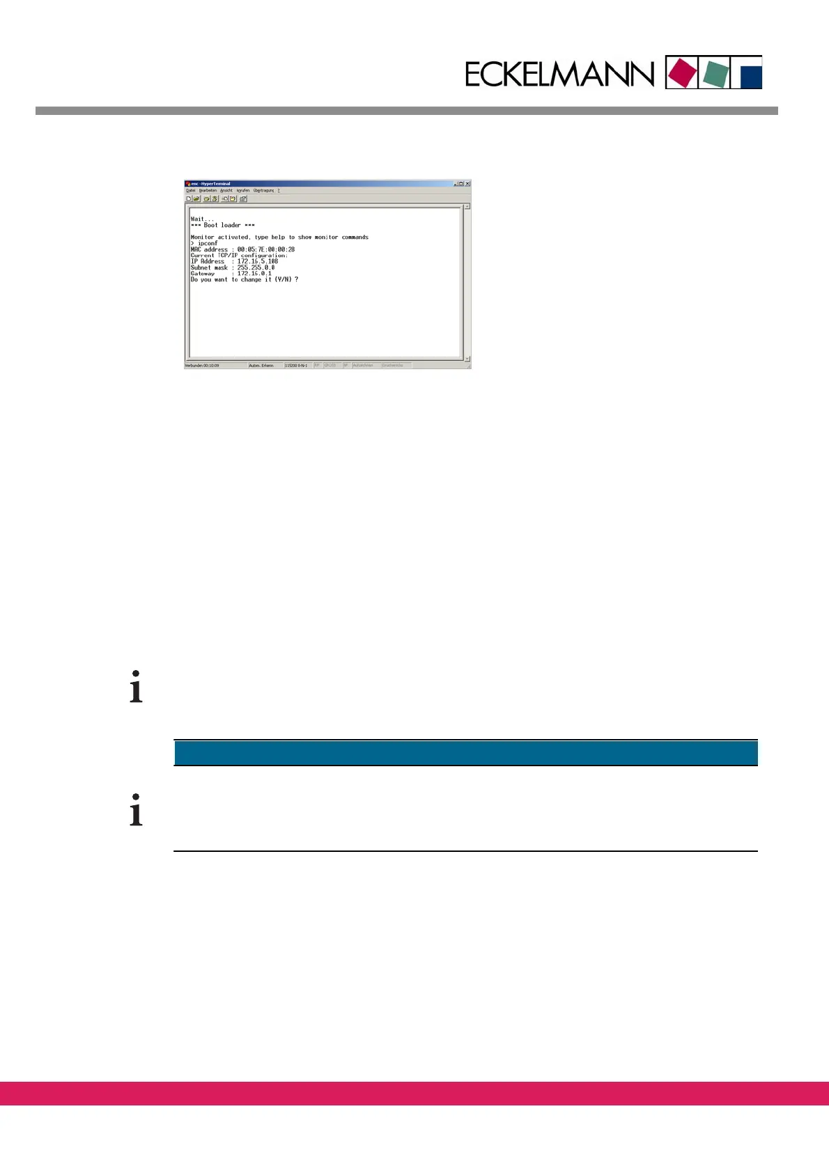 • The IP address is modified correspondingly after the input of „y“ and the input of