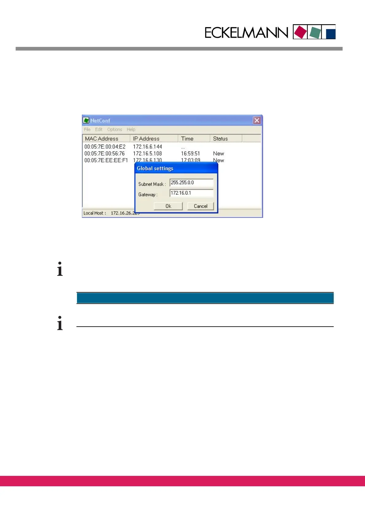 Figure 22: Modify Gateway and Subnet Mask in NetConf