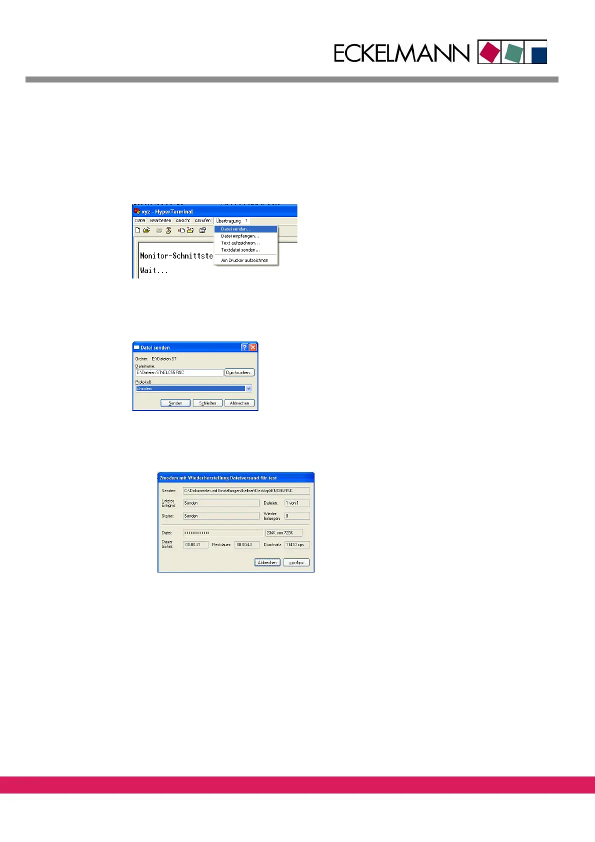 • Select Z-modem as the protocol and start the transfer with the „send“-button.