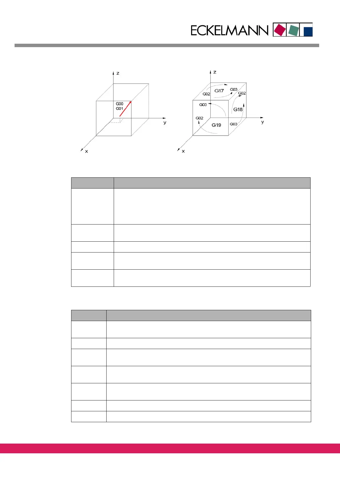 AXES Target point coordinates of the linear axes X, Y, Z, A, B, C, U, V, W x, y, z, a, b, c,