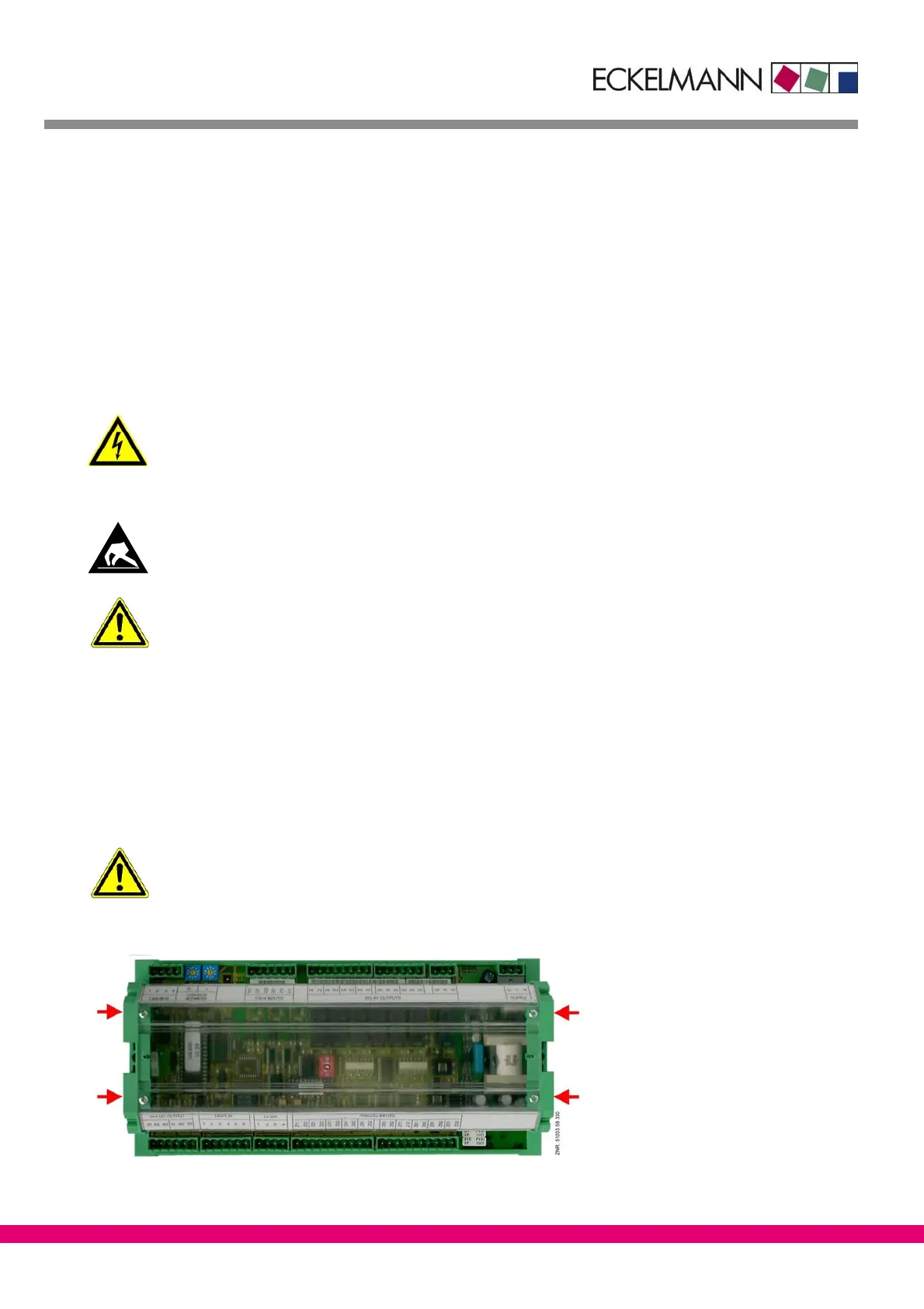 ESD (Electrostatic Discharge) regulations must be observed; see Section 1 Safety and Connection
