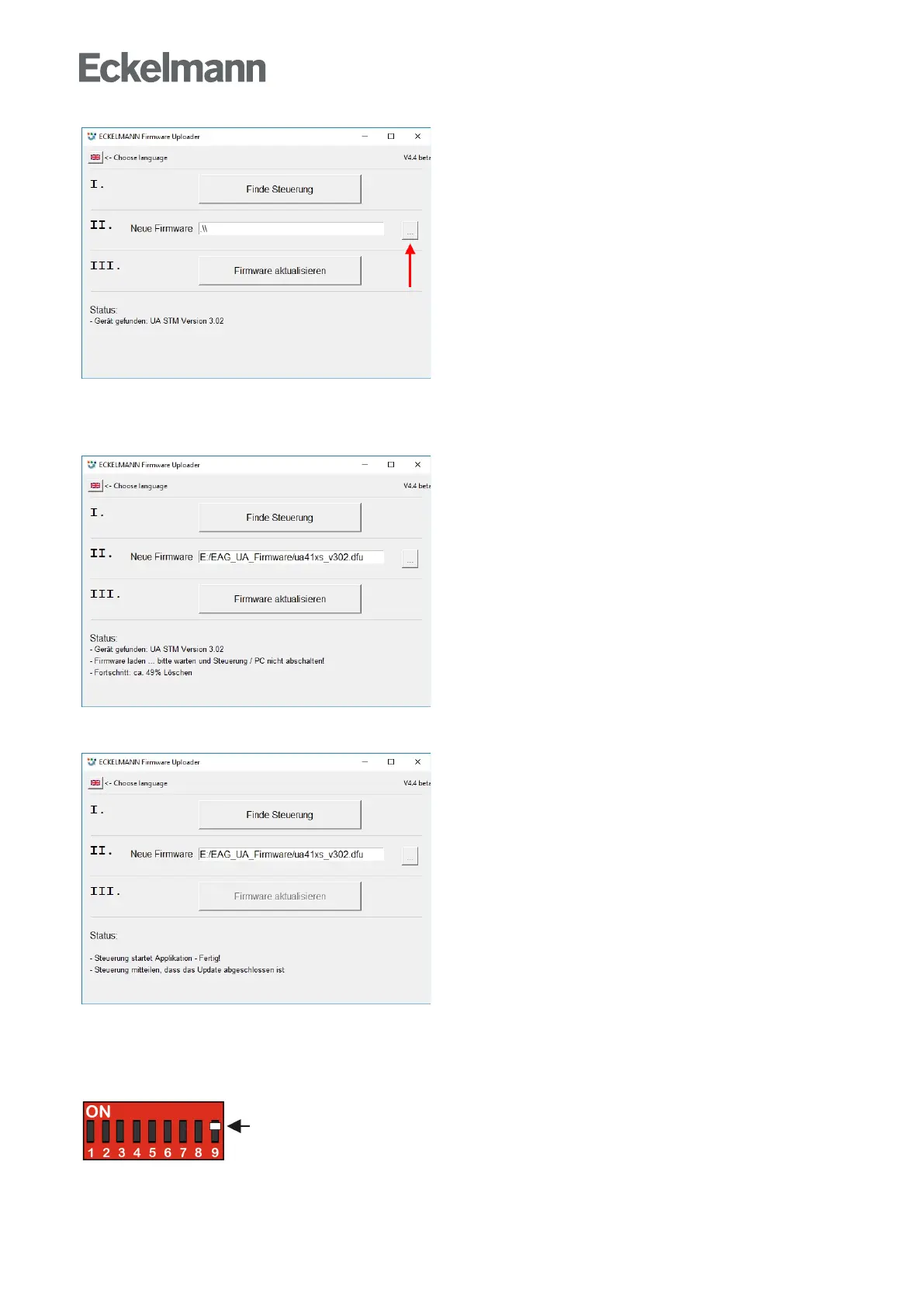 After performing a firmware update, only the coding switch 9 of the DIP switch S3 must be reset to ON: