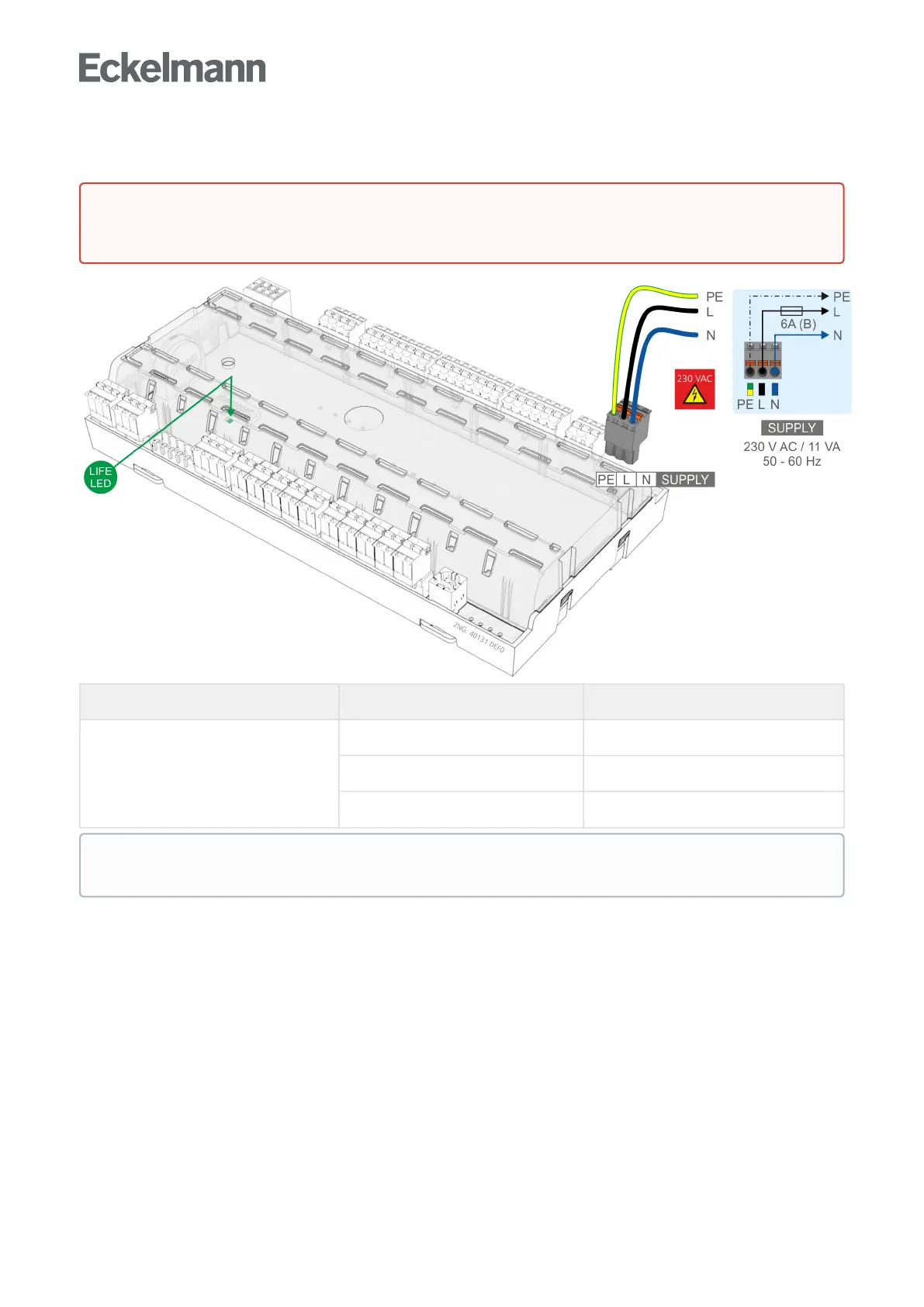 Afterconnectionofthe230VACpowersupply,thegreenLIFELEDflashes,fordetailsseechapter