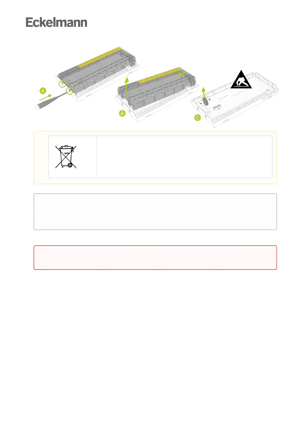 The device contains a lithium battery (for details, see chapter Disposal) that must be