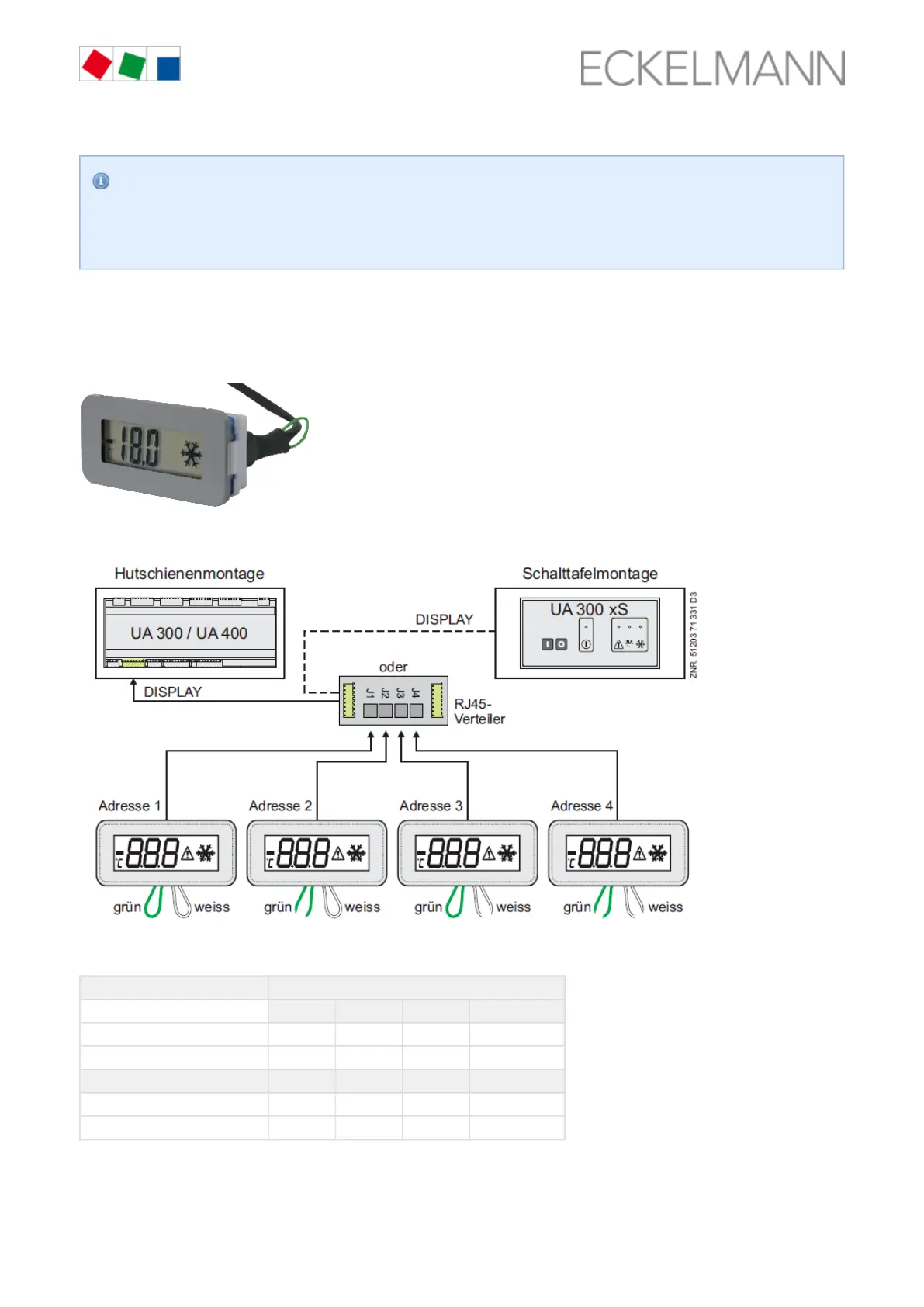 Up to 4 BT 30 temperature displays can be connected to the case controller.