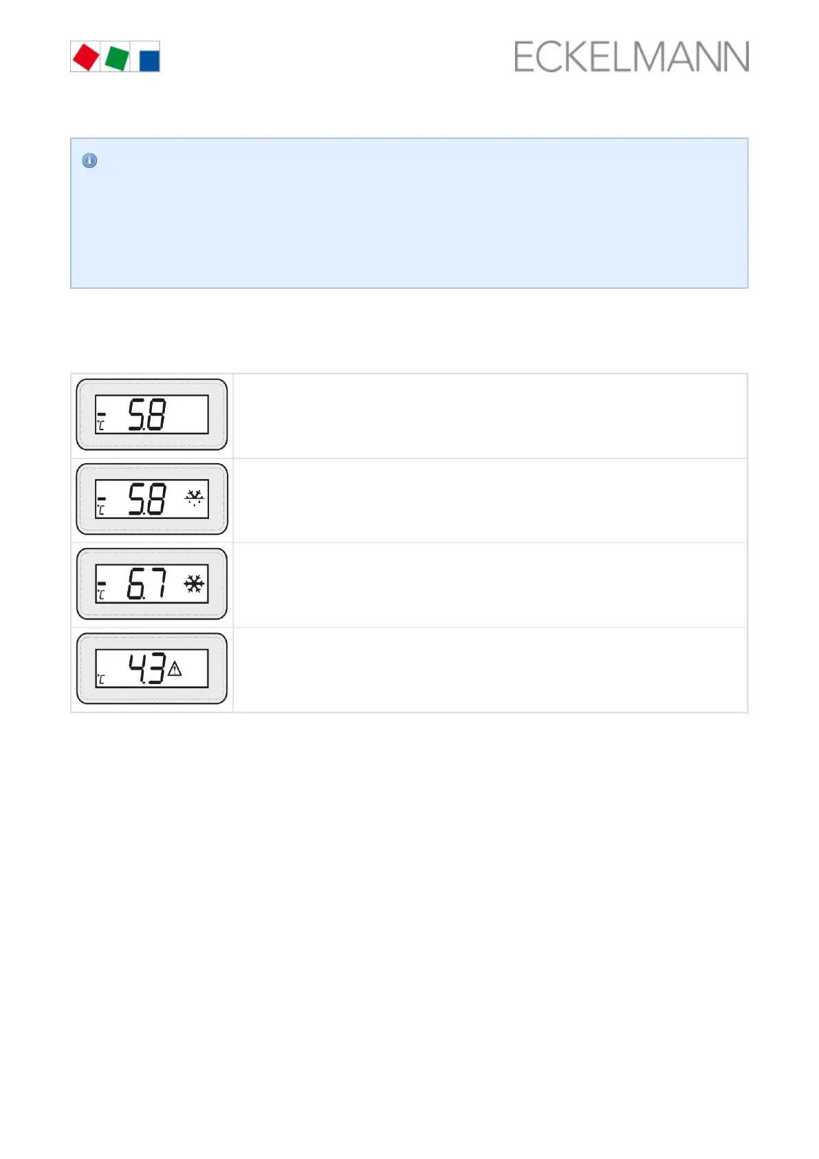Symbol "Defrost": A defrost symbol is displayed during the defrost. The last measured temperature value is