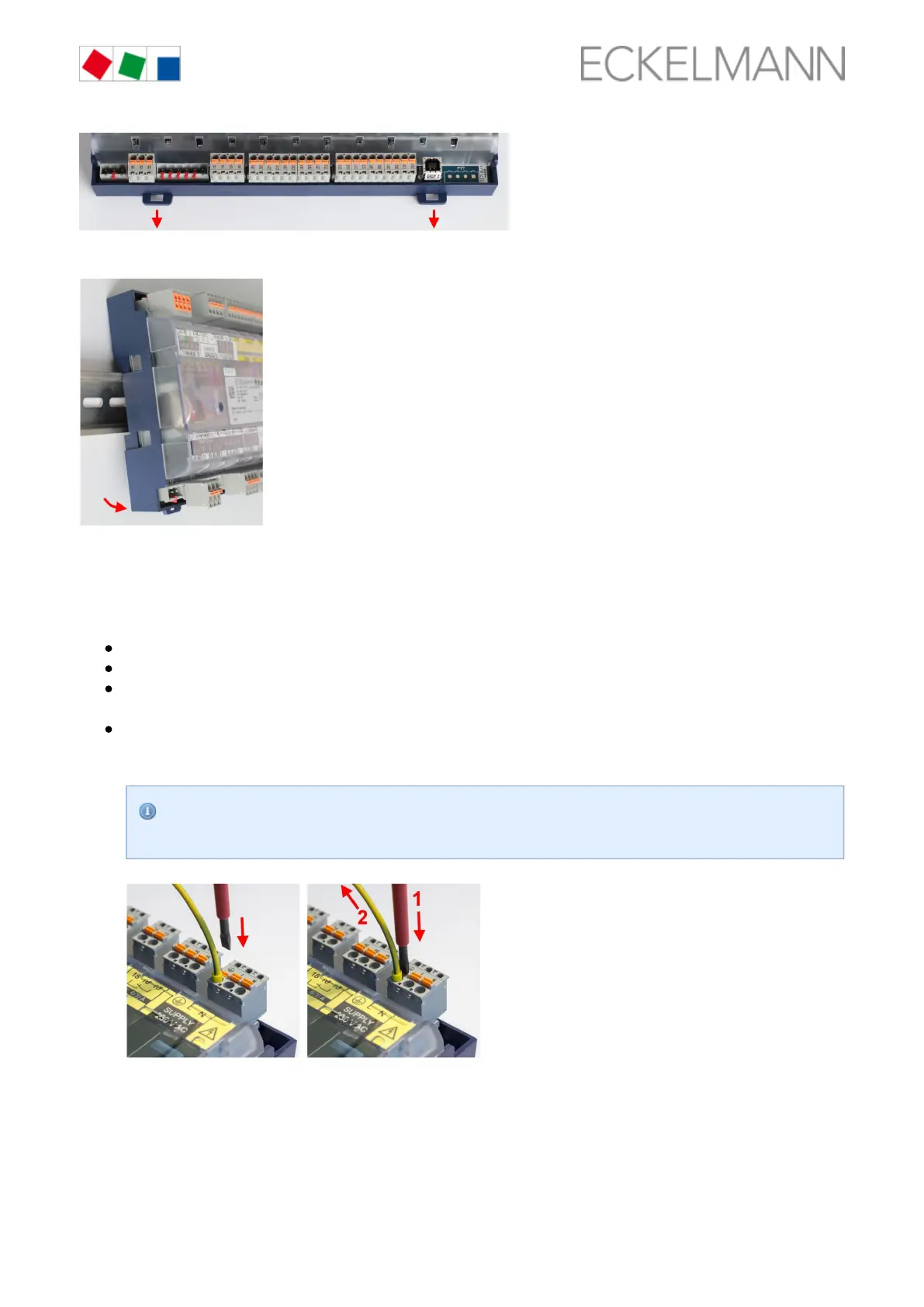 The wires are disconnected using a screwdriver (max. 3.5 mm width) via the orange push button at the