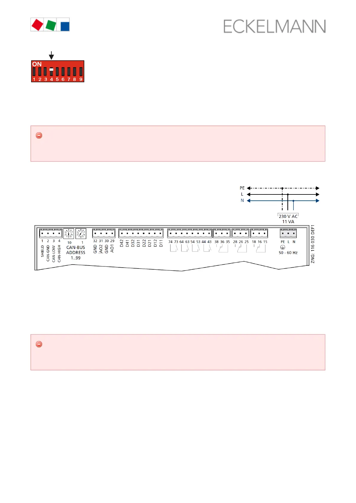 Danger of electric shock! BEFORE connection and disconnection it must be checked that the 230 V