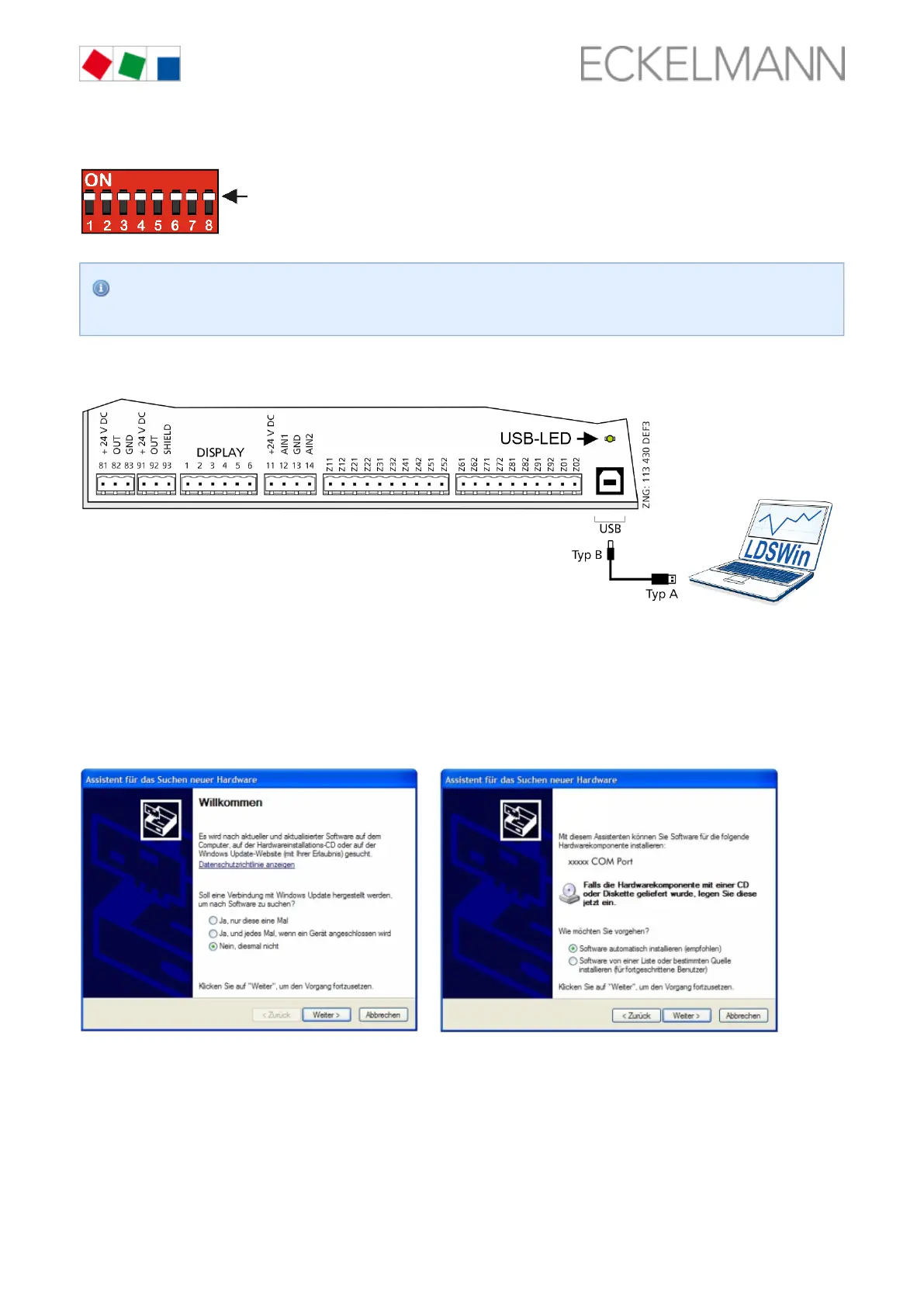 During the connection of the controller to the PC, the "Scan for new hardware wizard" opens. Please first