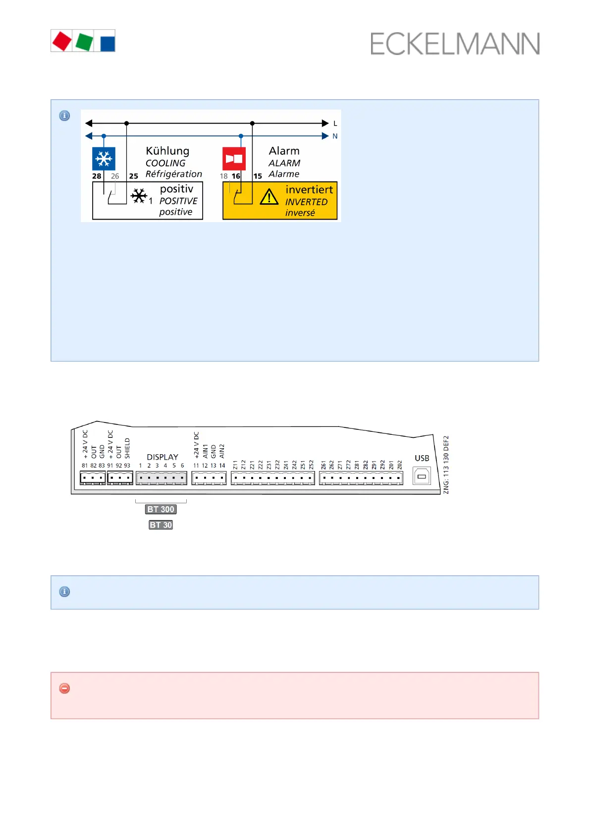 For further details, see chapter . Anschluss der Temperaturanzeige BT 30