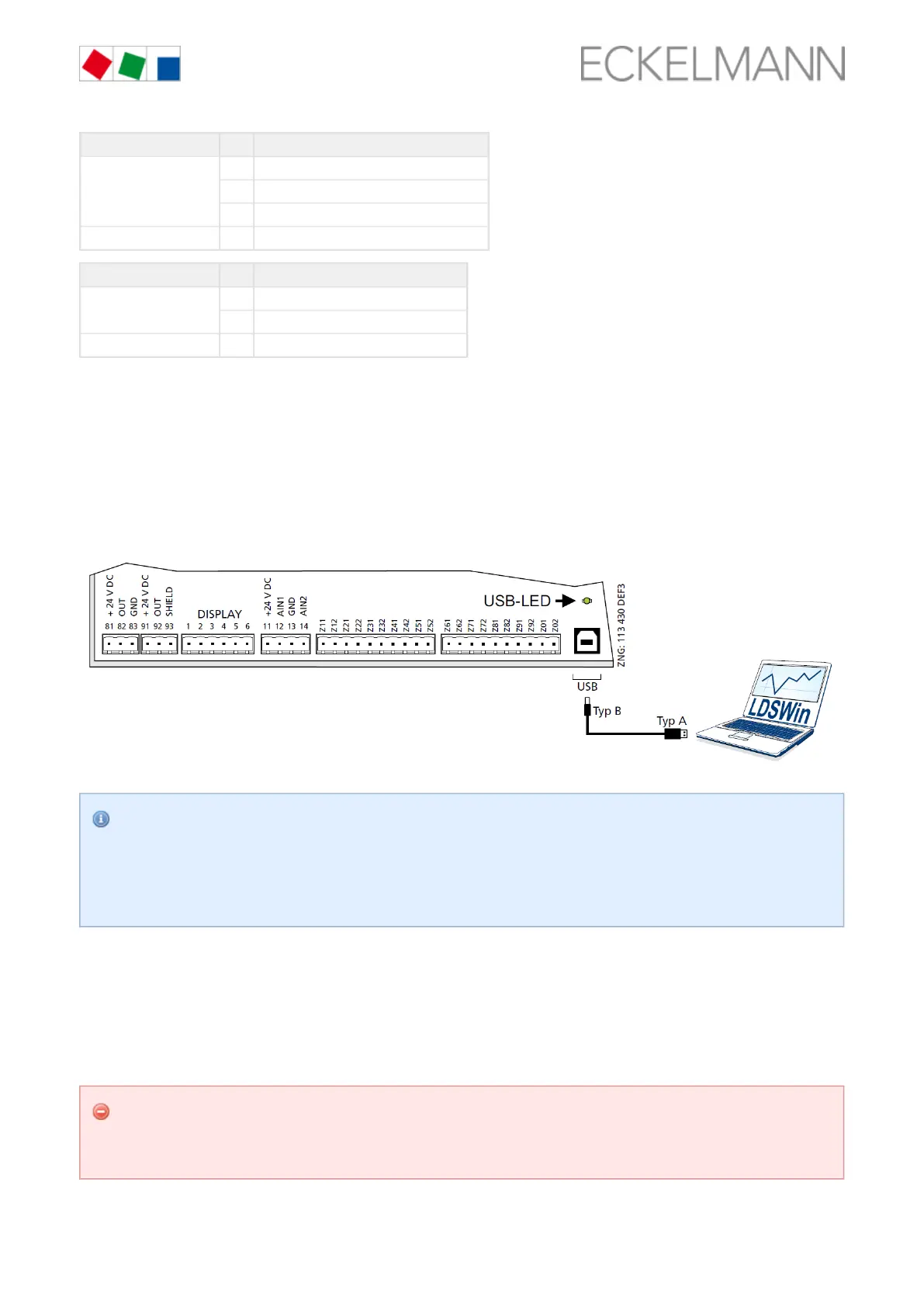 A USB A-B cable (see ) is required for the connection Status LEDs, page 47 Accessories, page 122