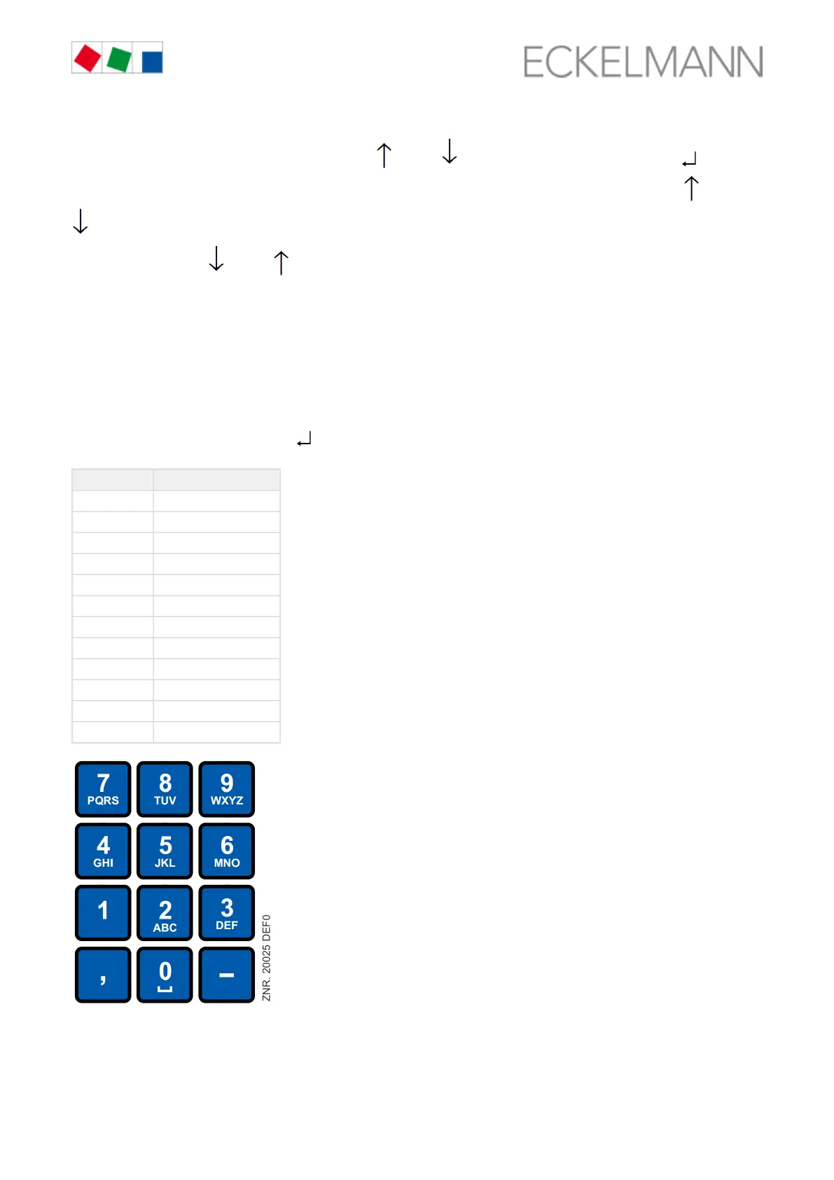 For fields that enable input of texts, the text input is also possible using the alphanumeric keyboard. Letters are