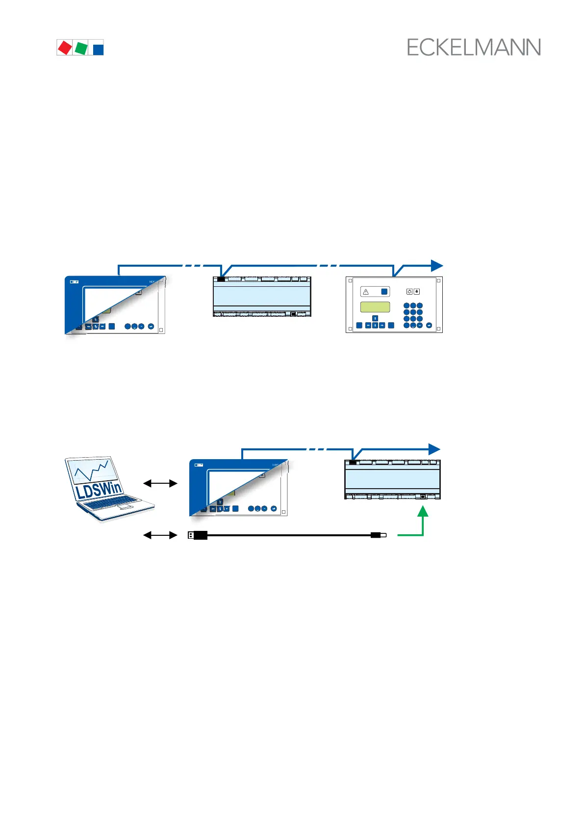 S Remote control with PC software LDSWin: A PC with LDSWin installed is connected to the system centre