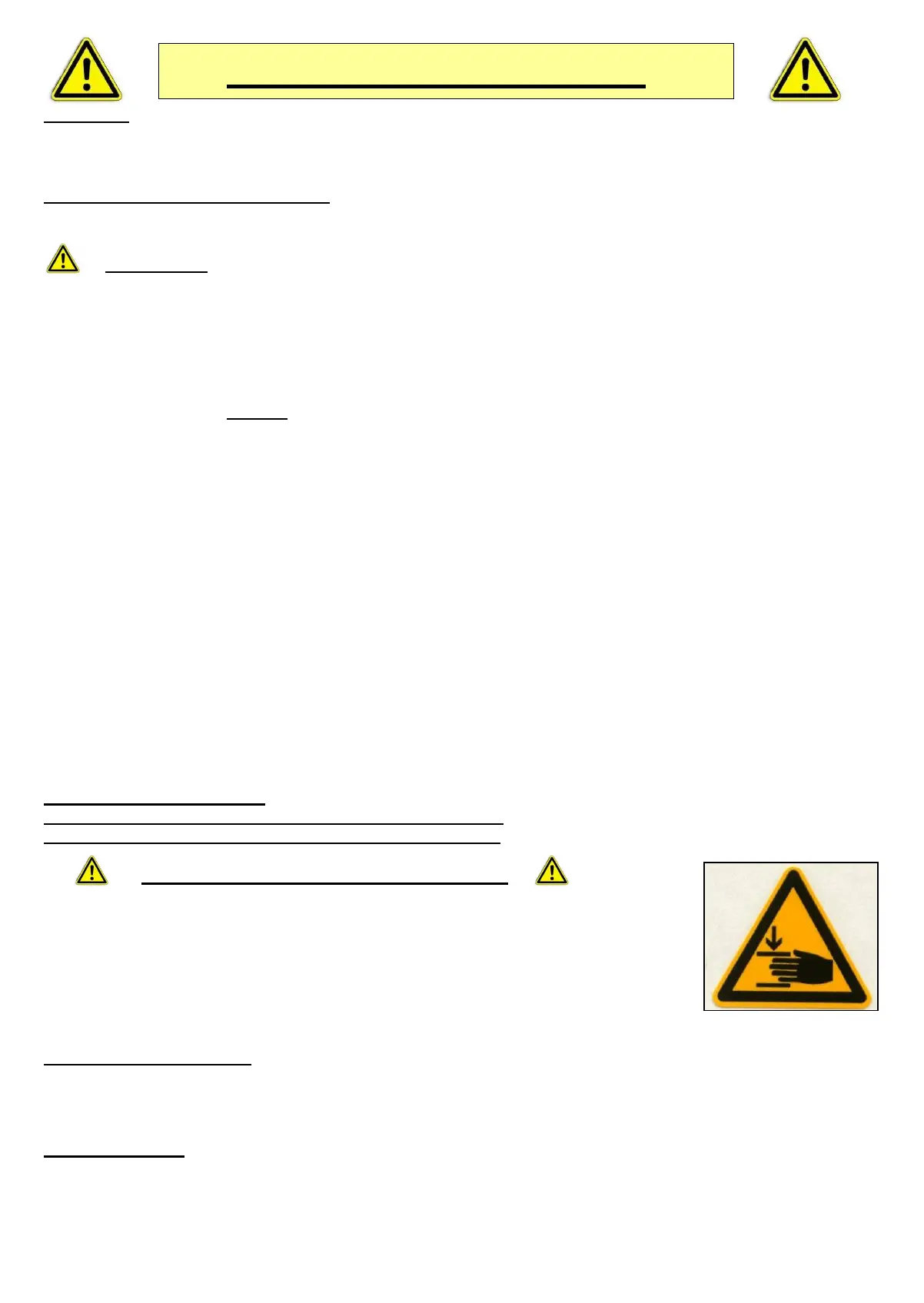 Please note carefully: Serious injury can occur by getting fingers or hand caught near
