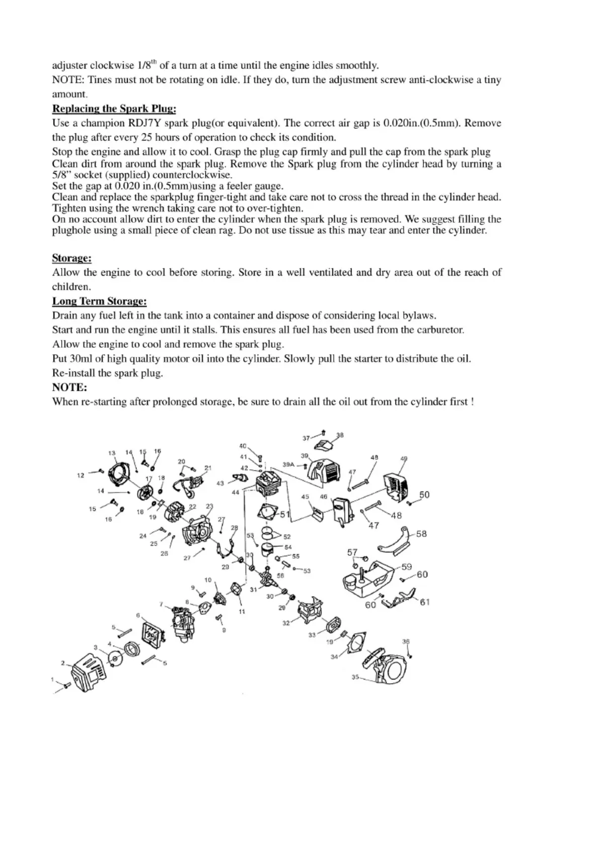 Eckman BE003 - Replacing the Spark Plug; Storage Guidelines