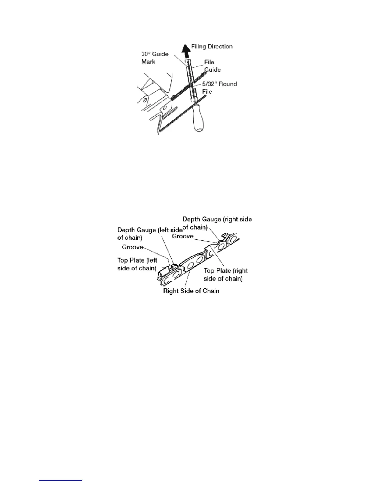 Note: This illustration shows file guide placement and filing direction for sharpening