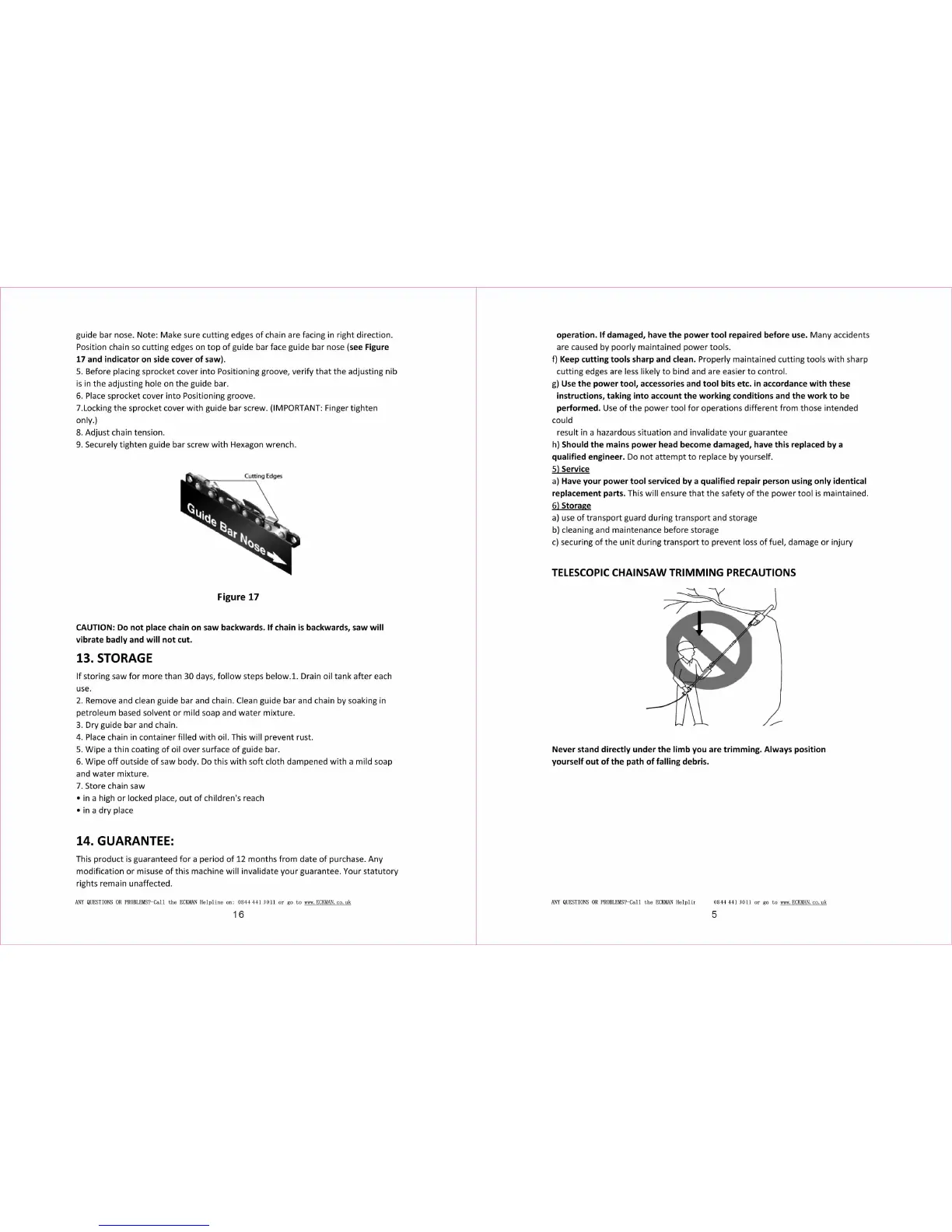 Eckman EKETCS01 - Telescopic Chainsaw Trimming Precautions