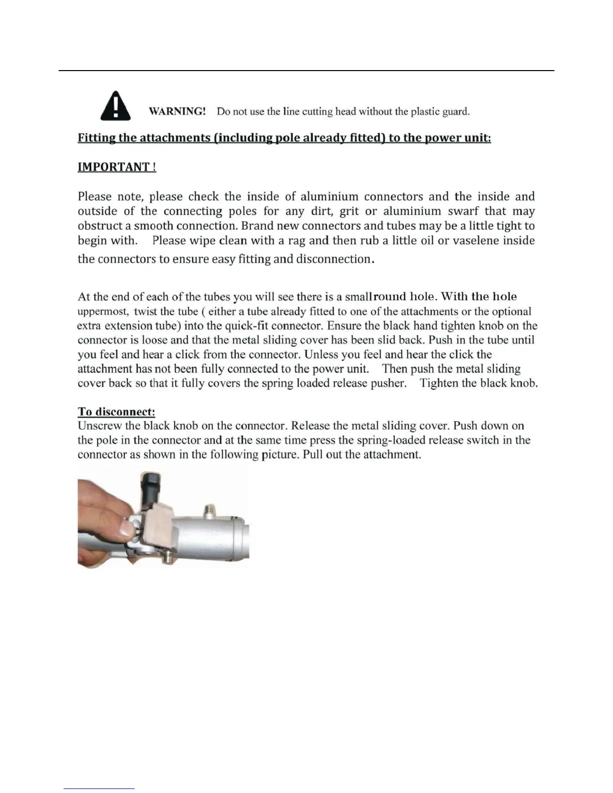 Eckman EKPBP01 - Fitting the Attachments to the Power Unit; To Disconnect