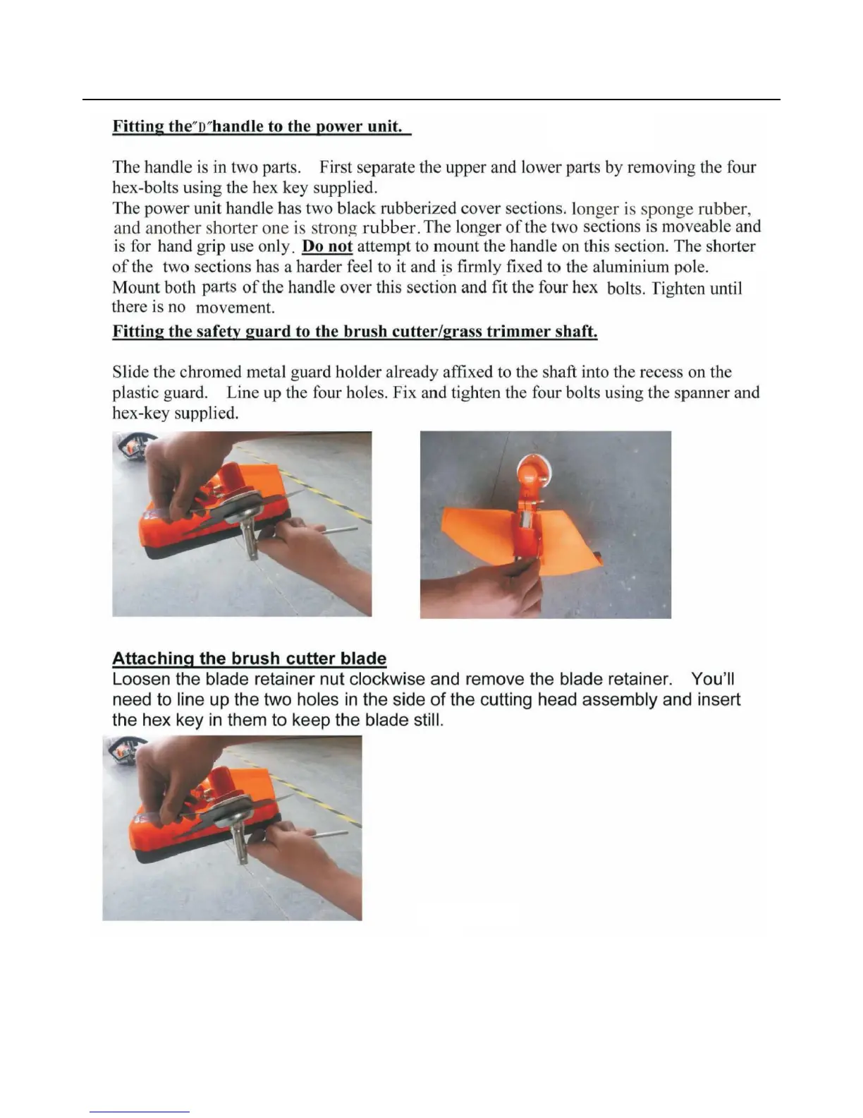 Eckman EKPBP01 - Fitting the D Handle to the Power Unit; Fitting the Safety Guard to the Brush Cutter;Grass Trimmer Shaft; Attaching the Brush Cutter Blade