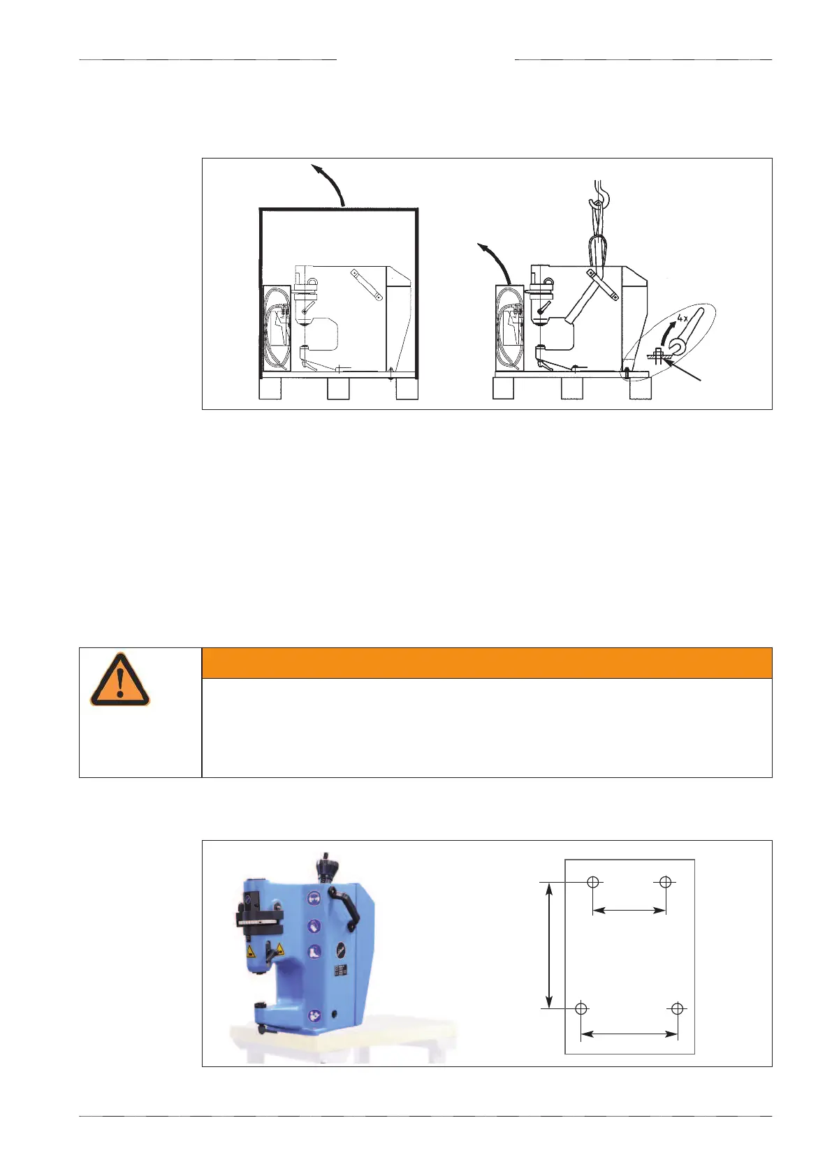 2. Take off the securing screws before lifting the machine.