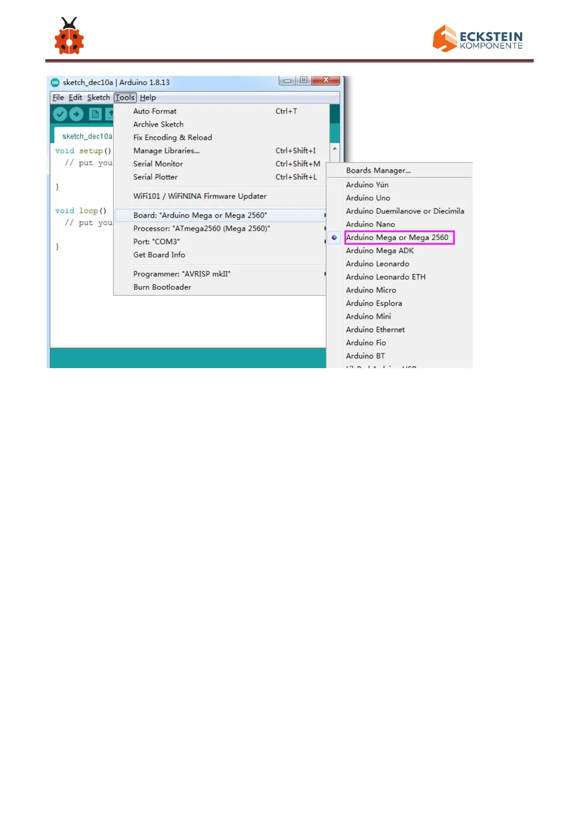 Then select the correct COM port (you can see the corresponding COM