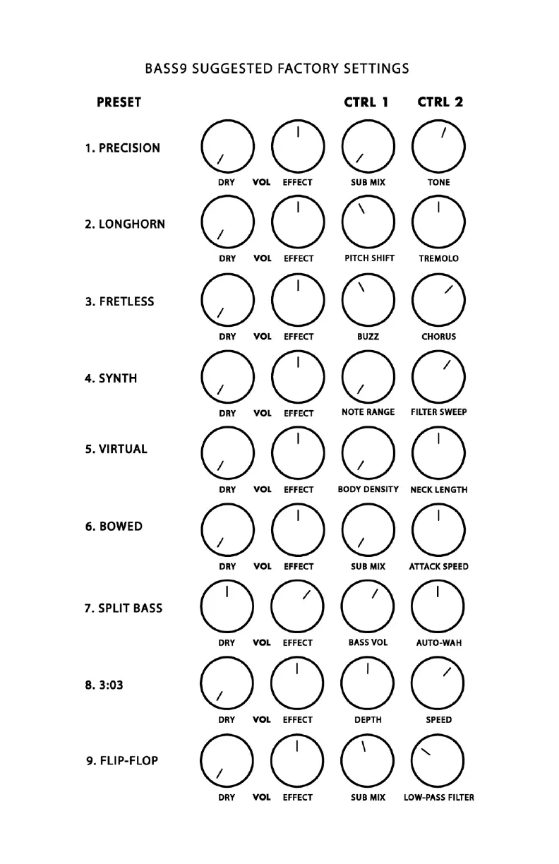 Eclectro-Harmonix Bass9 - Factory and User Settings; Suggested Factory Settings