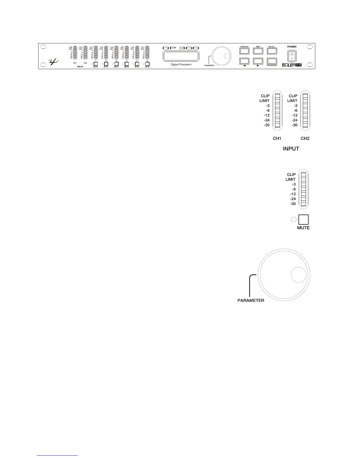 CLIP indicators are provided. Apart from normal operation for input level