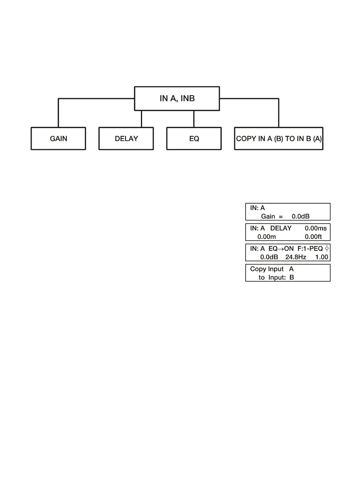 To select an input, press the ENCODER several times until IN A or IN B appears on the screen.