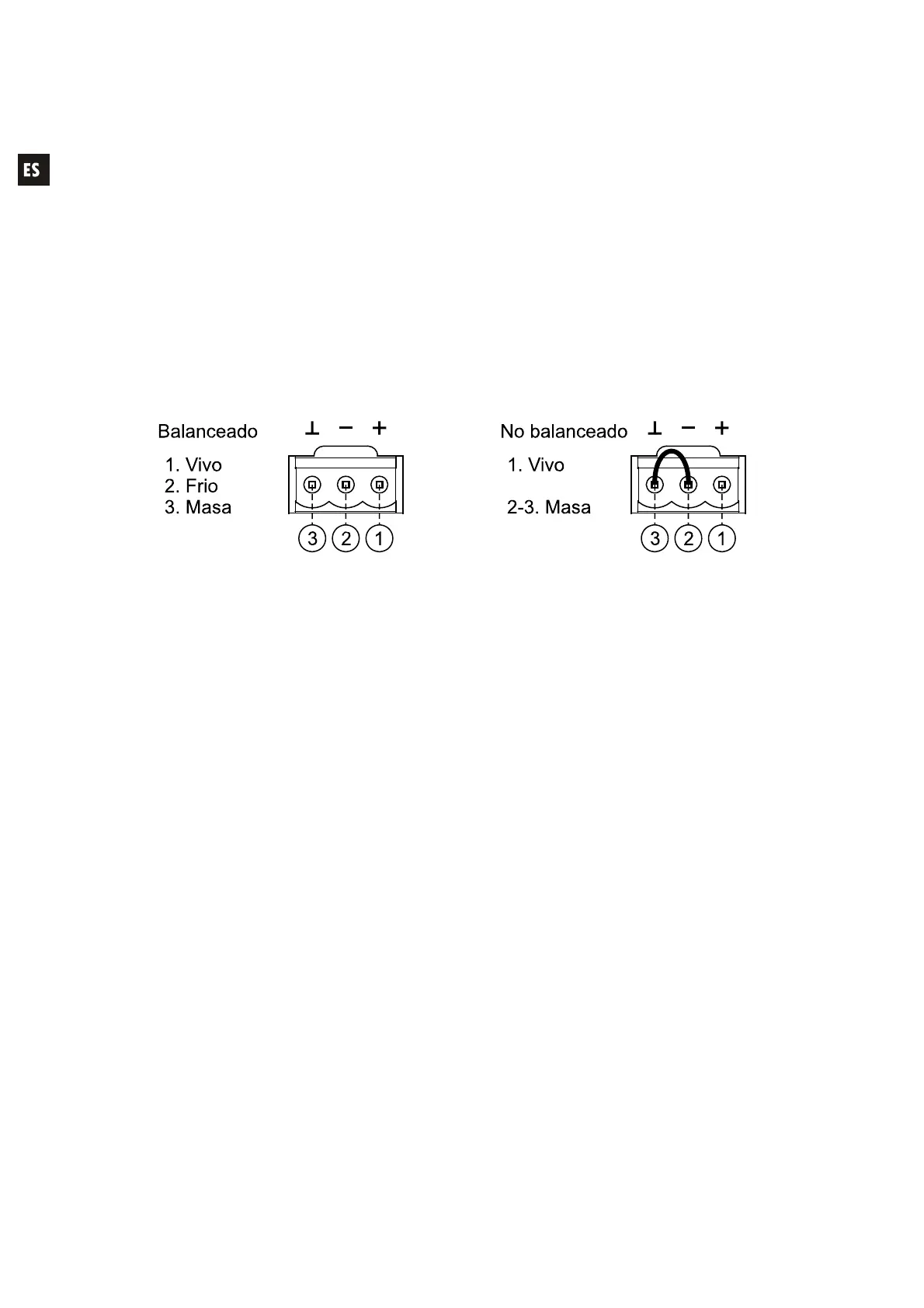 En caso de querer usar la salida en modo no balanceado es preciso cortocircuitar los terminales 2