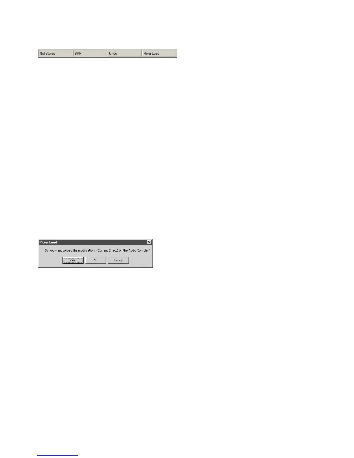 Yes lädt die aktuelle Effektkonfiguration in den NUO5 Mixer (außer den Mixerfunktionen TIME und