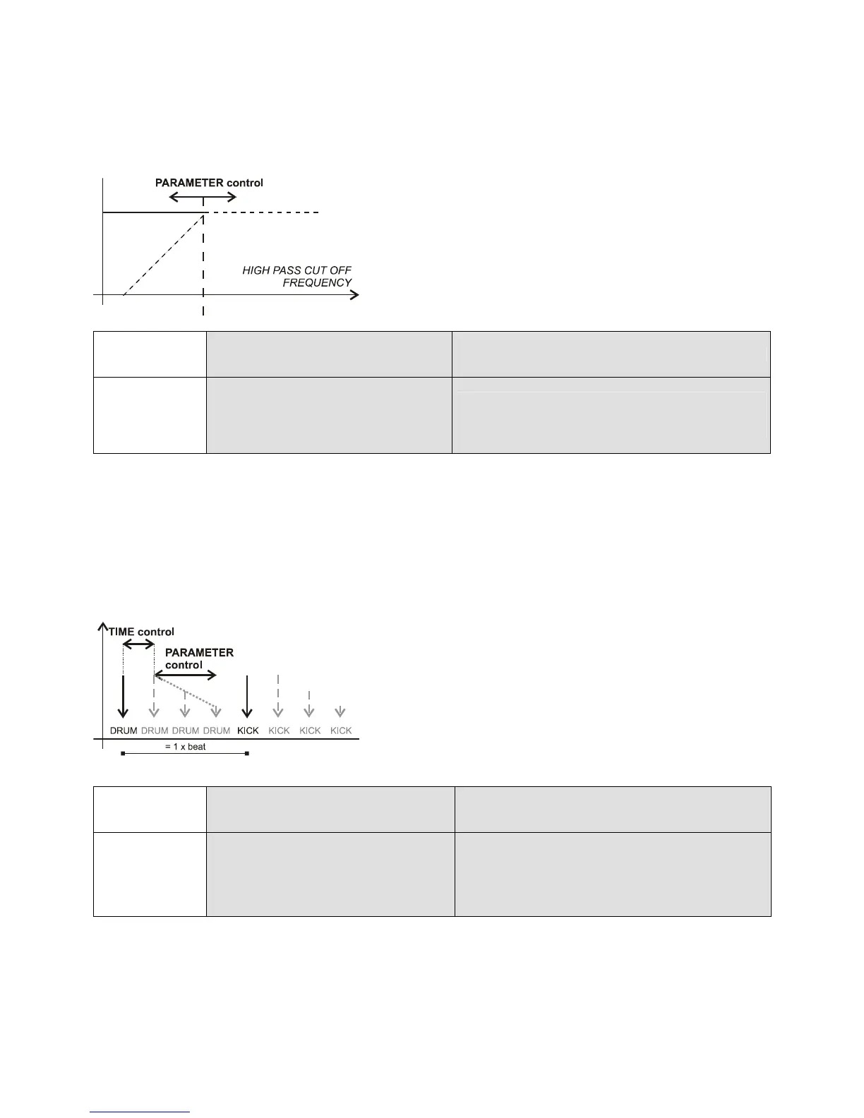 The user can manually move the filter “cut-off” frequency and mix for example a new track “opening” the filter