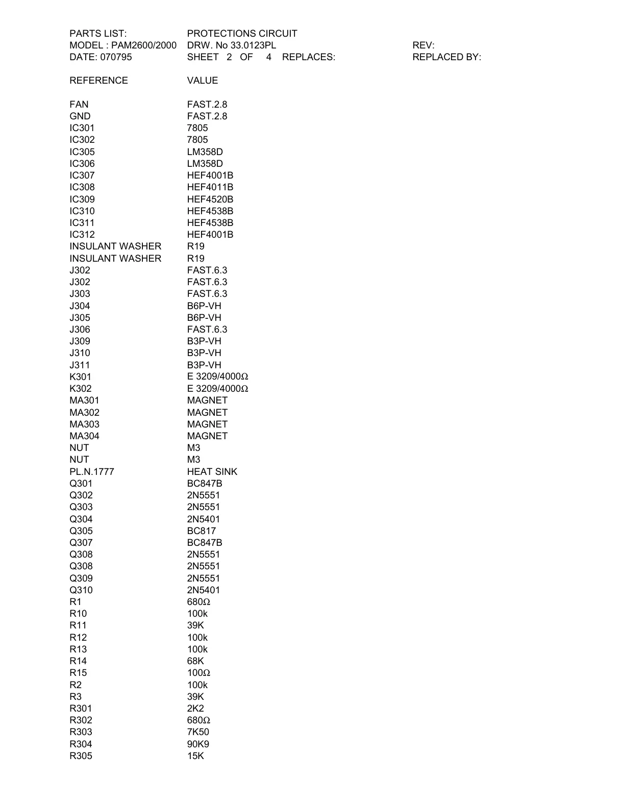 MODEL : PAM2600/2000 DRW. No 33.0123PL REV: