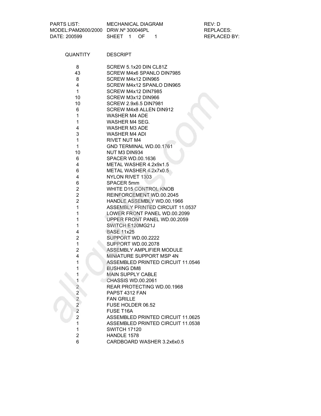 MODEL:PAM2600/2000 DRW.Nº 300046PL REPLACES: