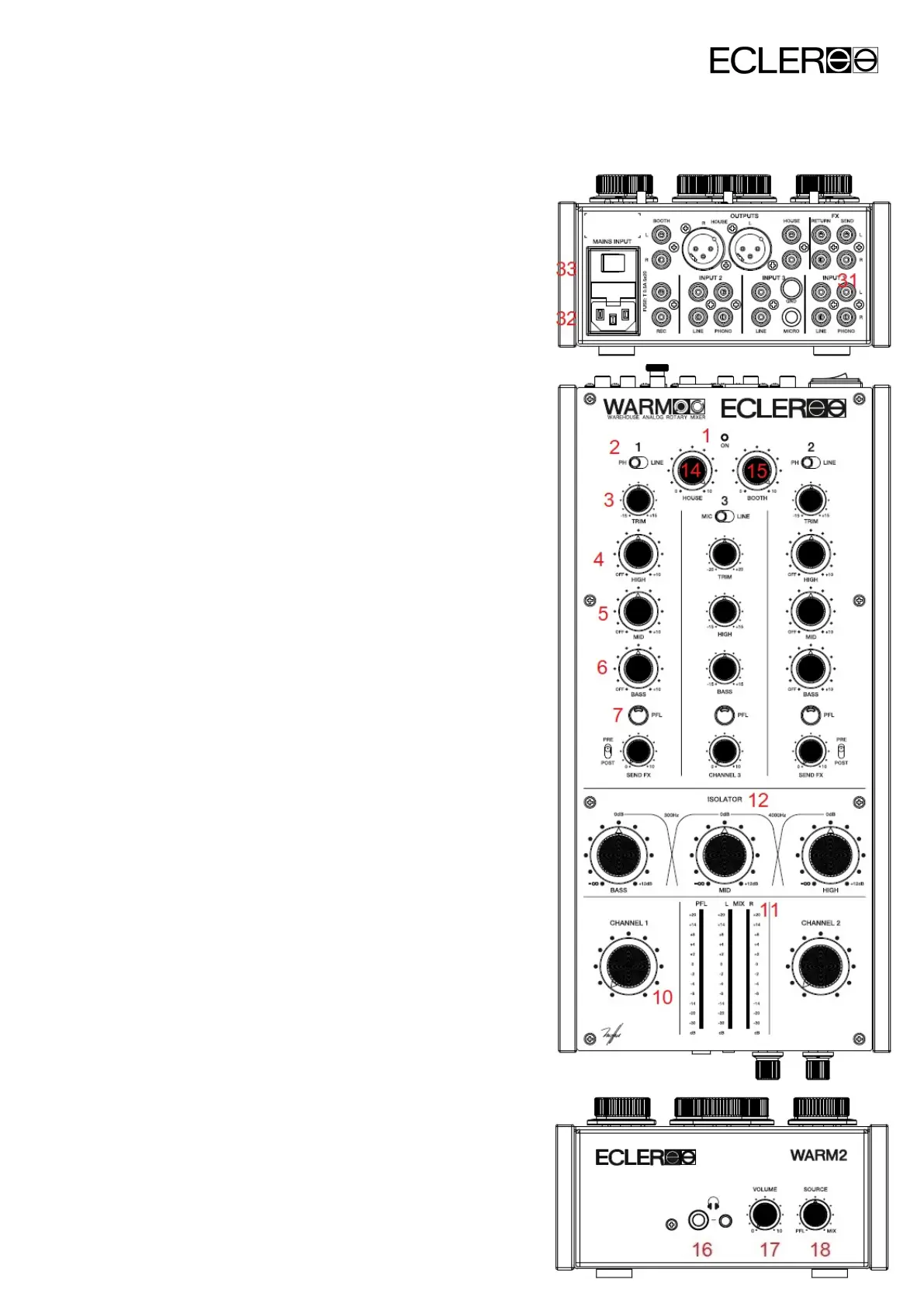 Set Channel 1 TRIM, HIGH, MID and BASS
