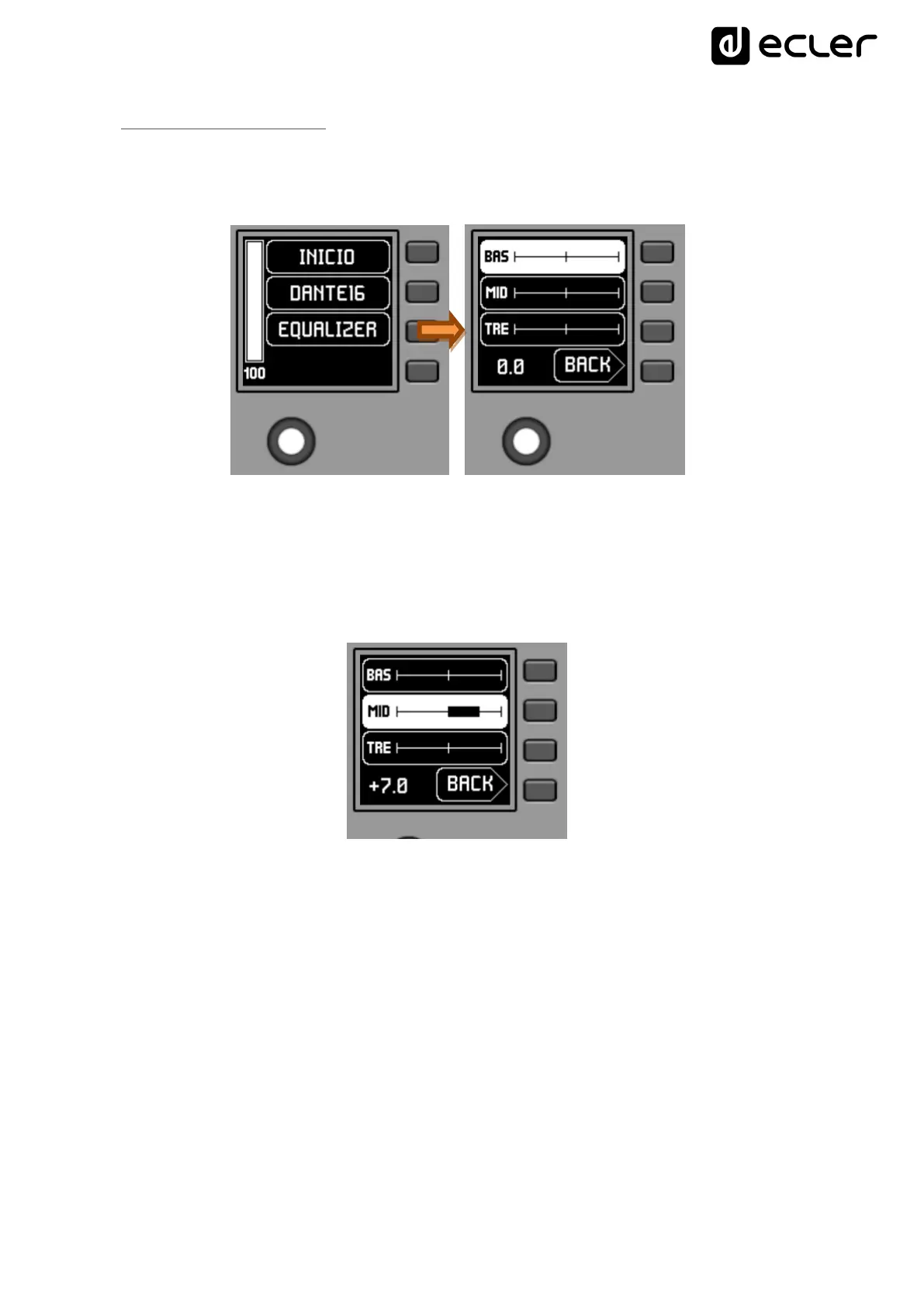 On the main screen, text field S3 shows the text accessing the equalization menu.