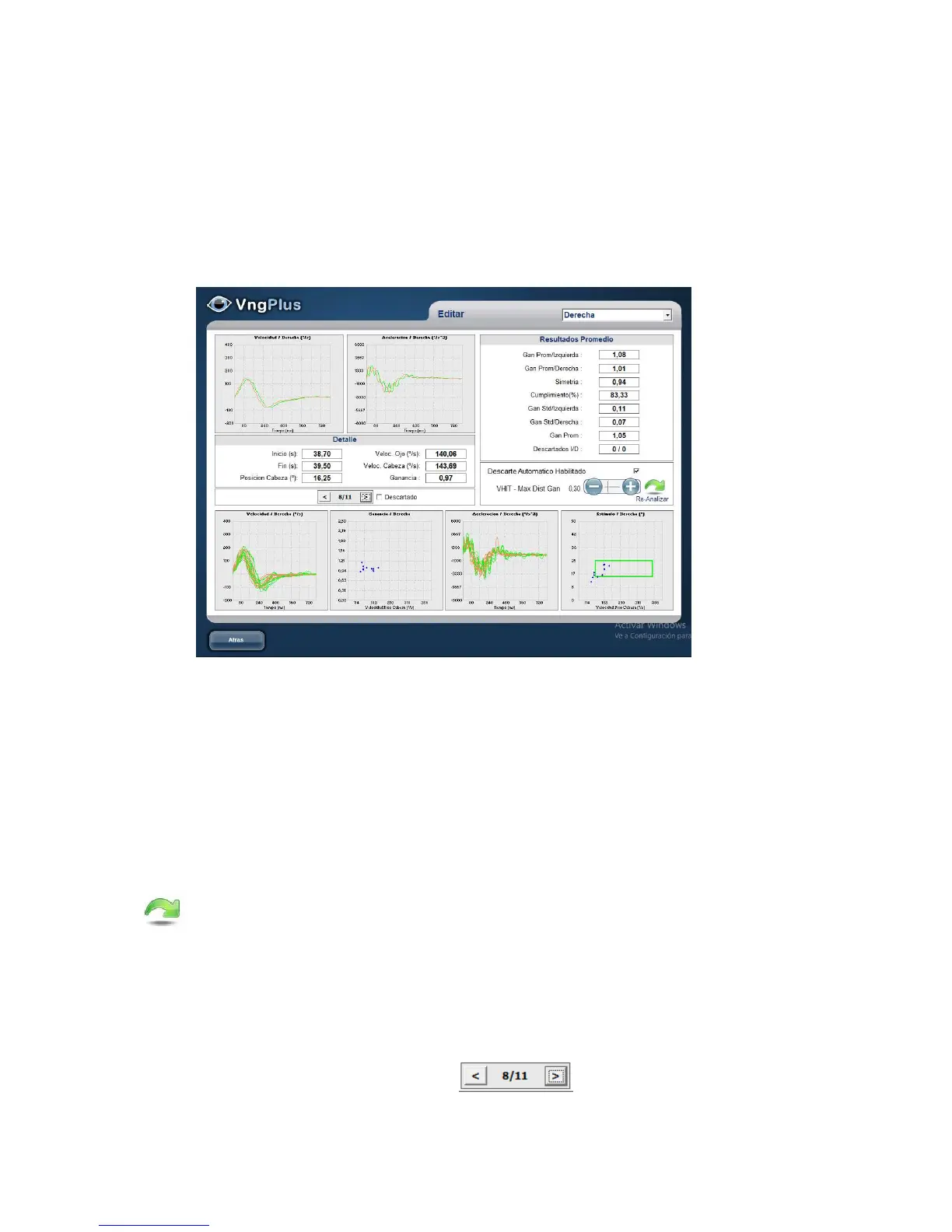 For each impulse, the response of the eye in speed and acceleration (green) is