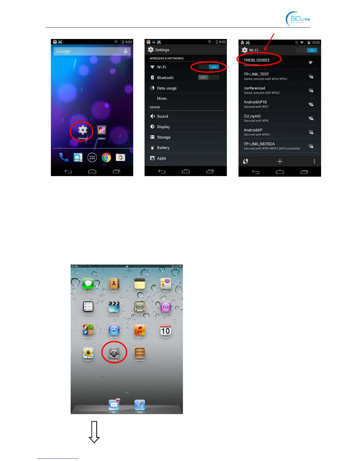 2. Click “Settings” and the interface pops up. Select the “WLAN” function to “ON”, then click the