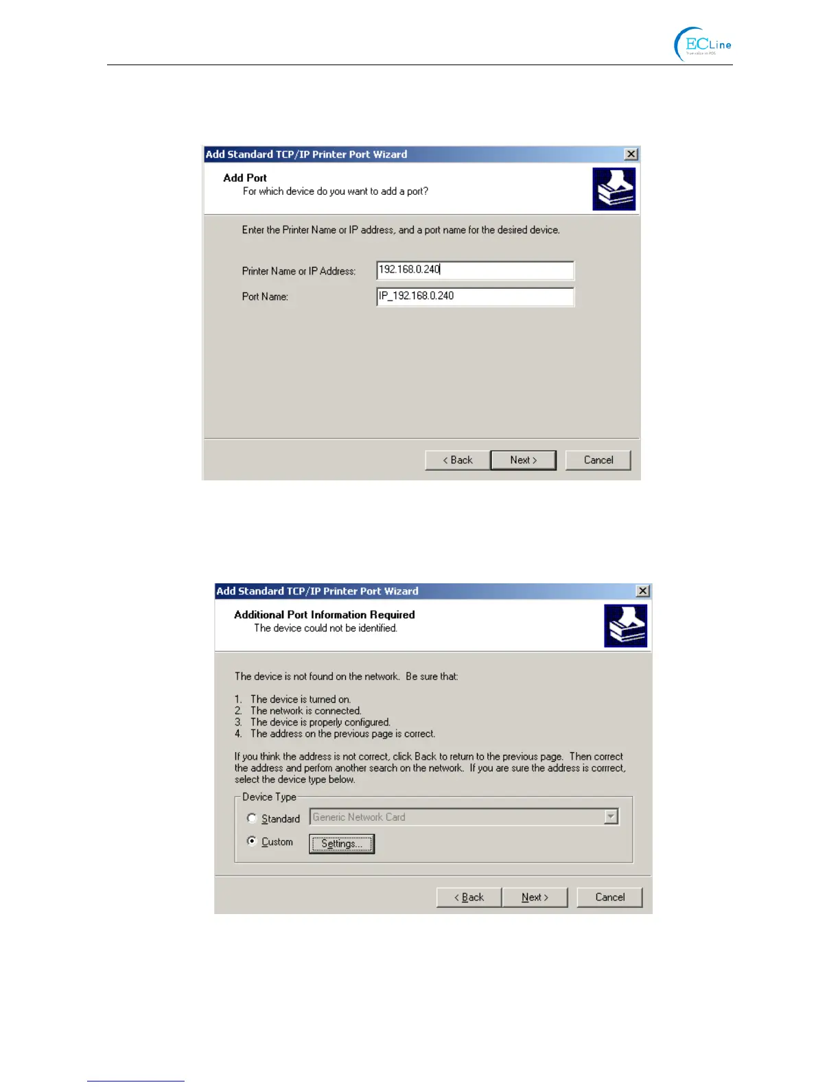 example. “Port name” is created automatically after finishing filling in IP address. Click “Next”.