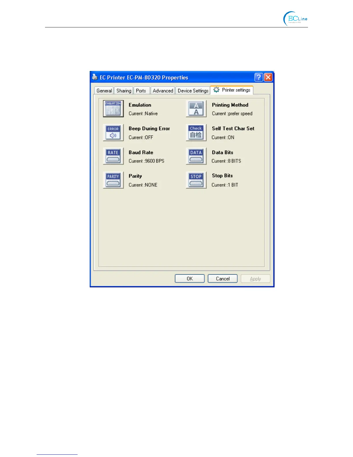 right are the current settings. The computer will load the printer’s current setting automatically