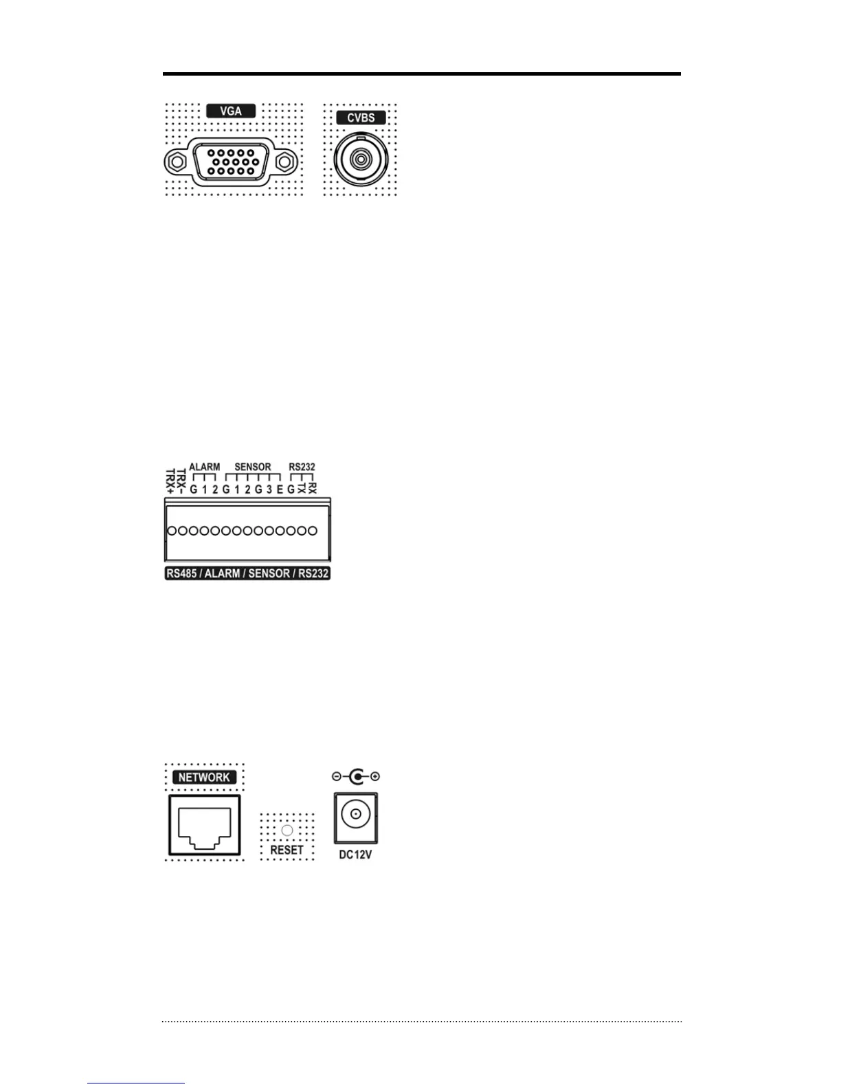 • Reset: The DVR has a Reset switch that will only be used to return all the settings to the
