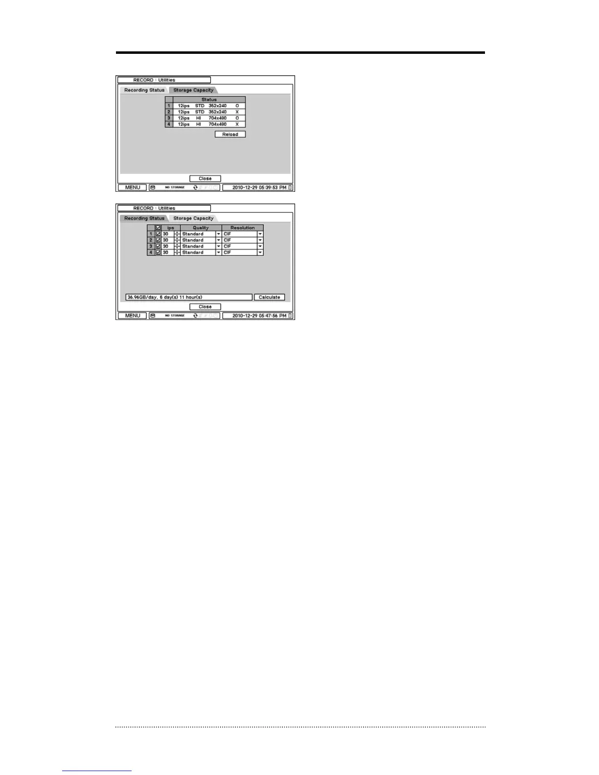 In Storage Capacity, estimated HDD usage and recording period can be calculated. Press
